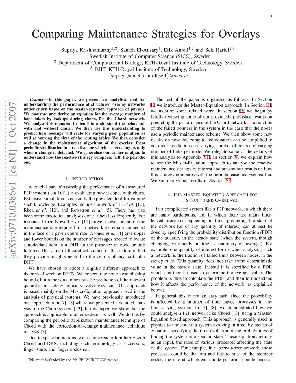 Comparing Maintenance Strategies for Overlays