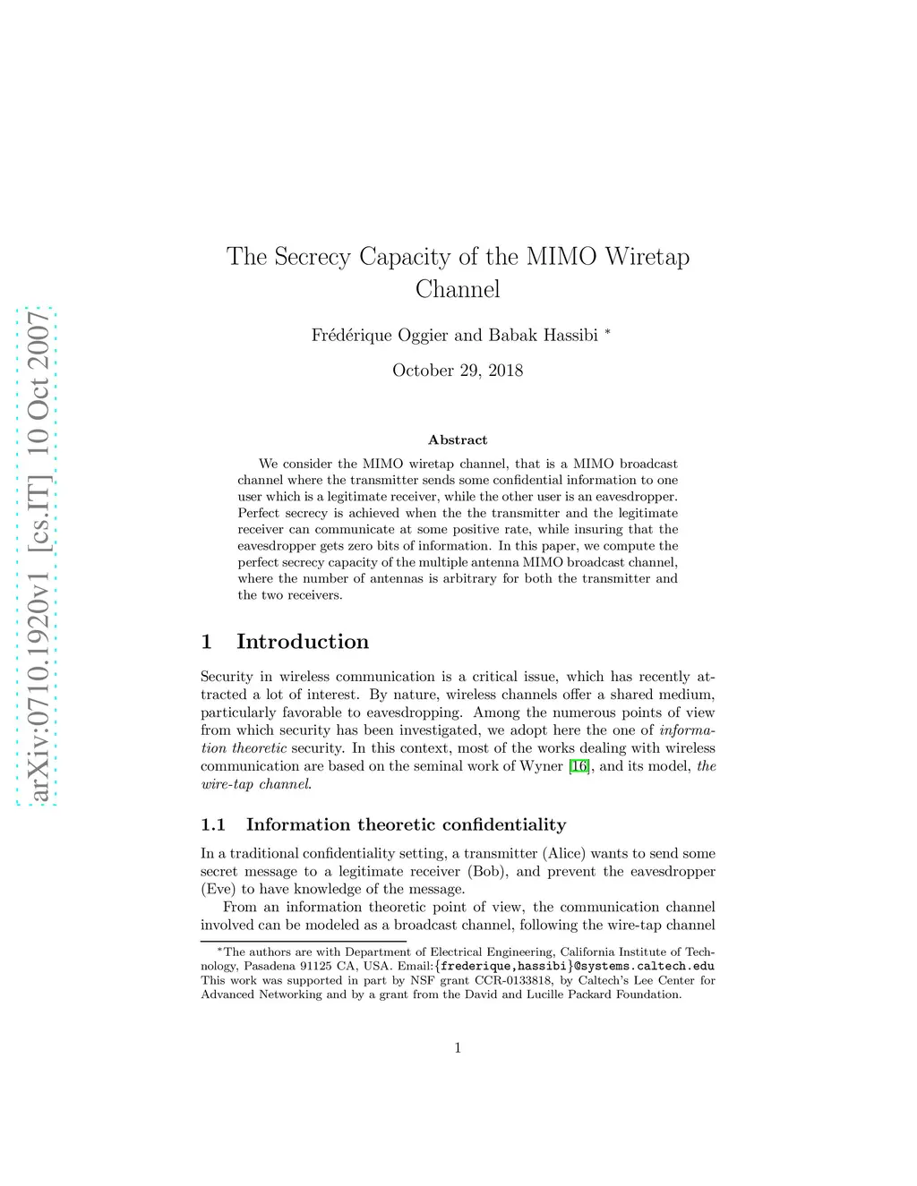 The Secrecy Capacity of the MIMO Wiretap Channel