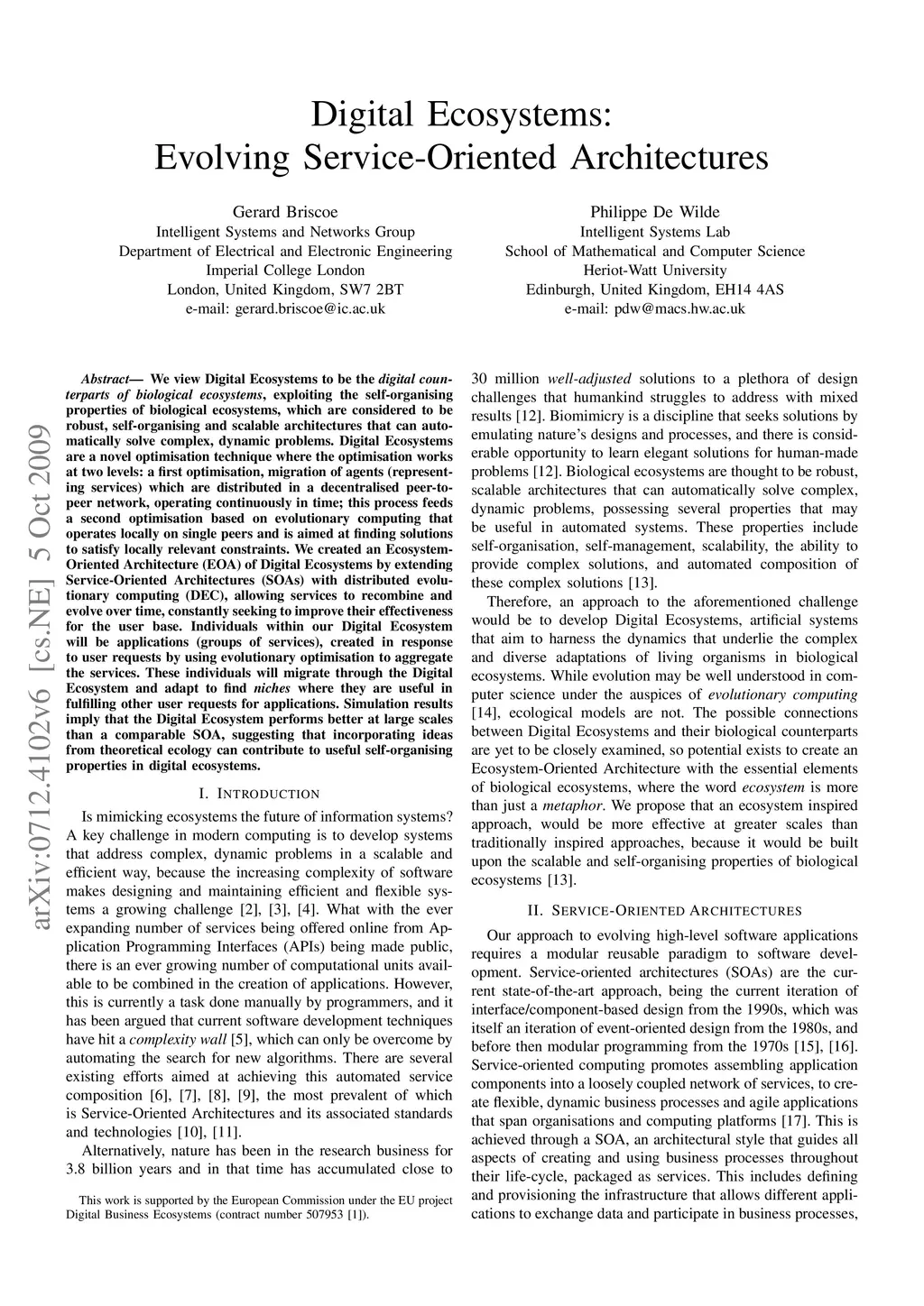 Digital Ecosystems: Evolving Service-Oriented Architectures
