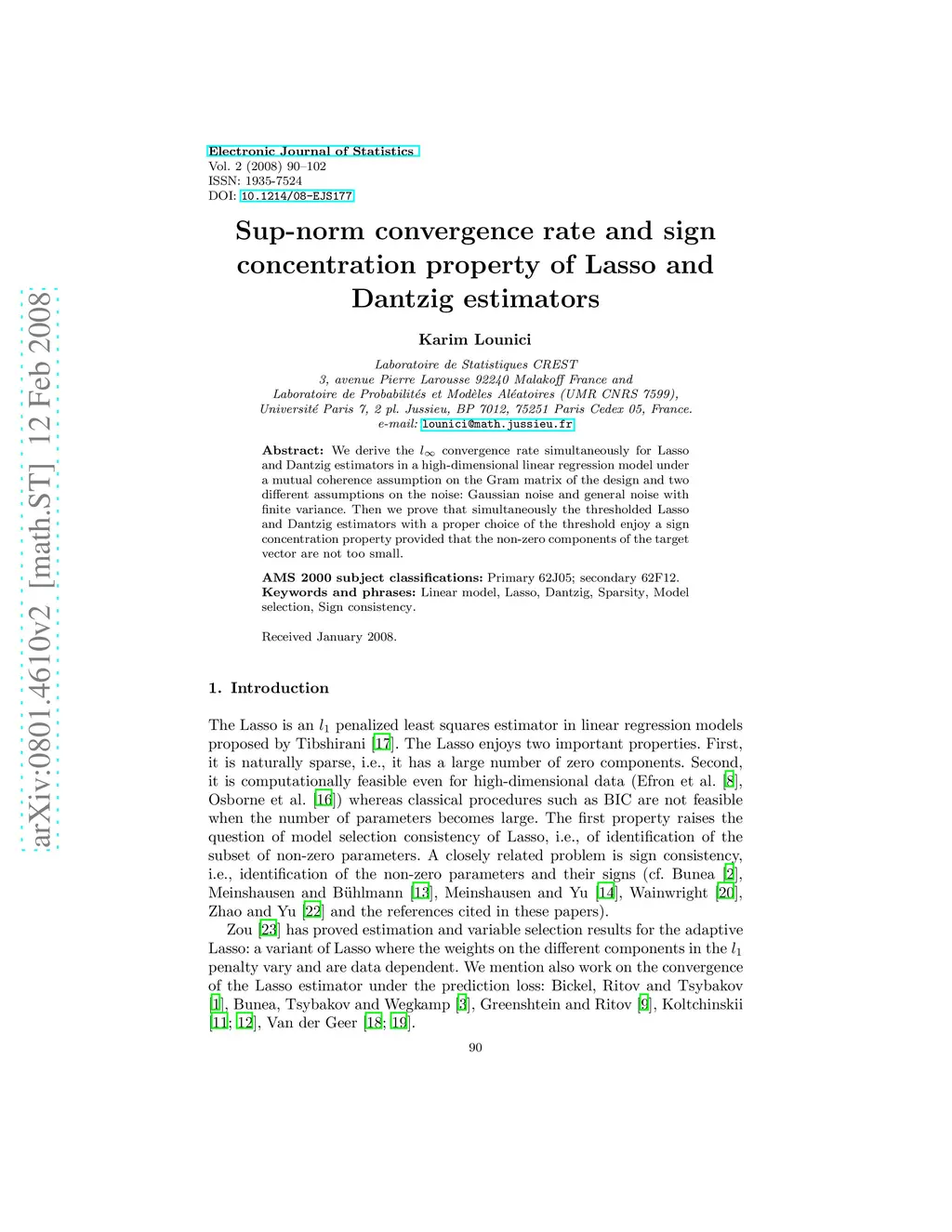 We derive the convergence rate simultaneously for Lasso and Dantzig estimators in a high-dimensional linear regression model under a mutual coherence assumption on the Gram matrix of the design and two different assumptions on the noise: Gaussian noise and general noise with finite variance. Then we prove that simultaneously the thresholded Lasso and Dantzig estimators with a proper choice of the threshold enjoy a sign concentration property provided that the non-zero components of the target vector are not too small.