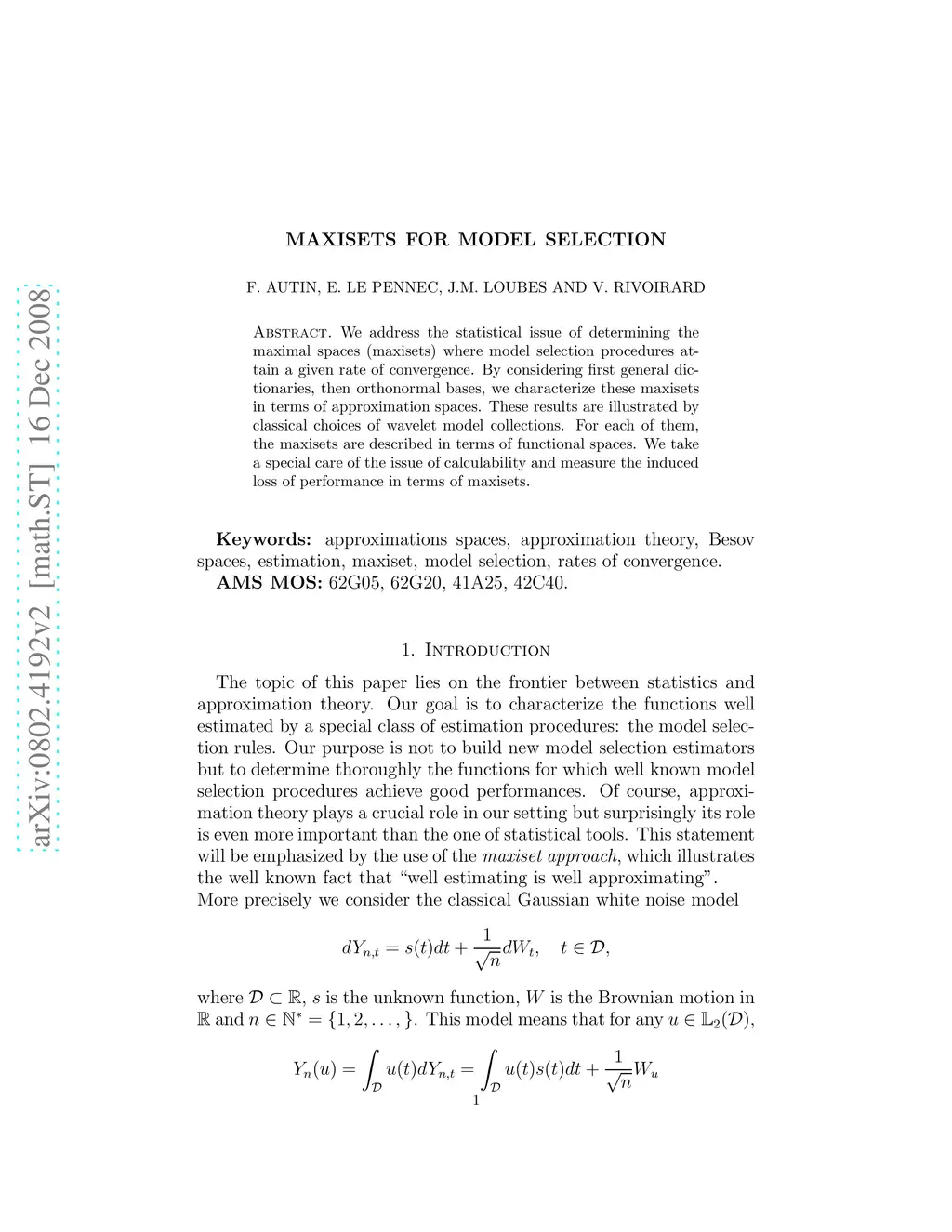 We address the statistical issue of determining the maximal spaces (maxisets) where model selection procedures attain a given rate of convergence. By considering first general dictionaries, then orthonormal bases, we characterize these maxisets in terms of approximation spaces. These results are illustrated by classical choices of wavelet model collections. For each of them, the maxisets are described in terms of functional spaces. We take a special care of the issue of calculability and measure the induced loss of performance in terms of maxisets.