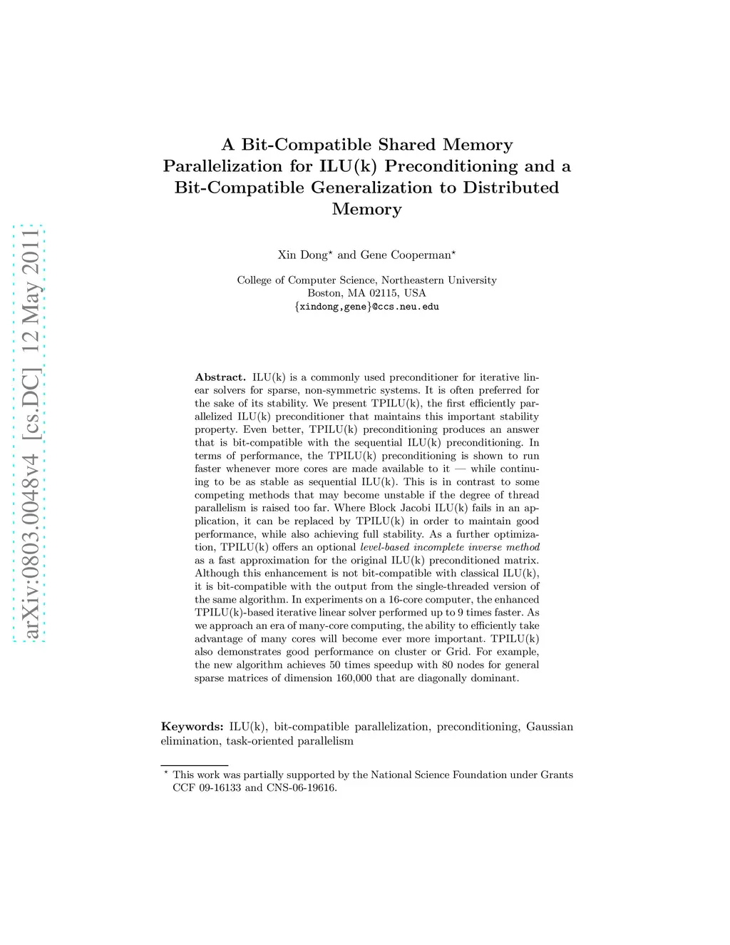 Preconditioning and a Bit-Compatible Generalization to Distributed Memory