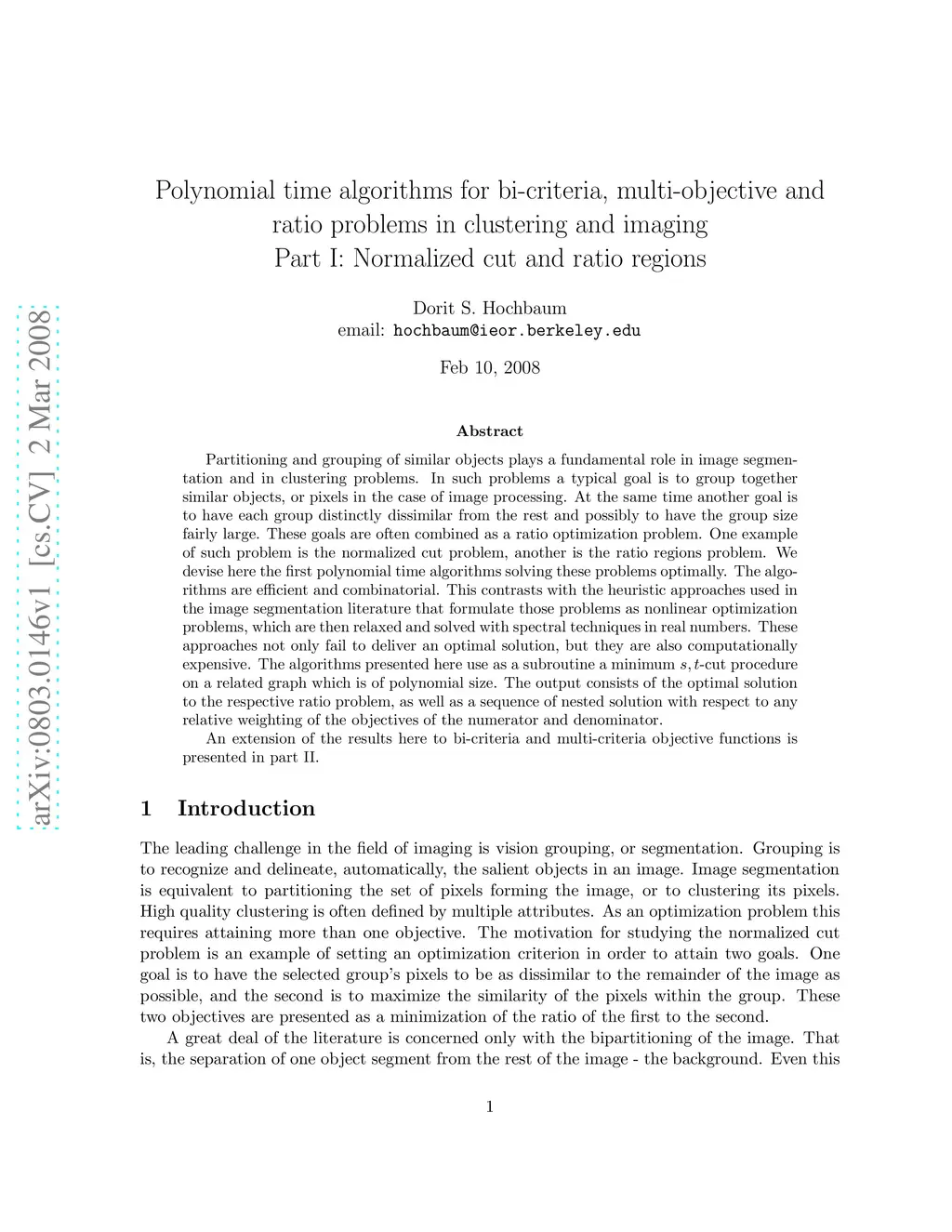 problems in clustering and imaging. Part I: Normalized cut and ratio regions