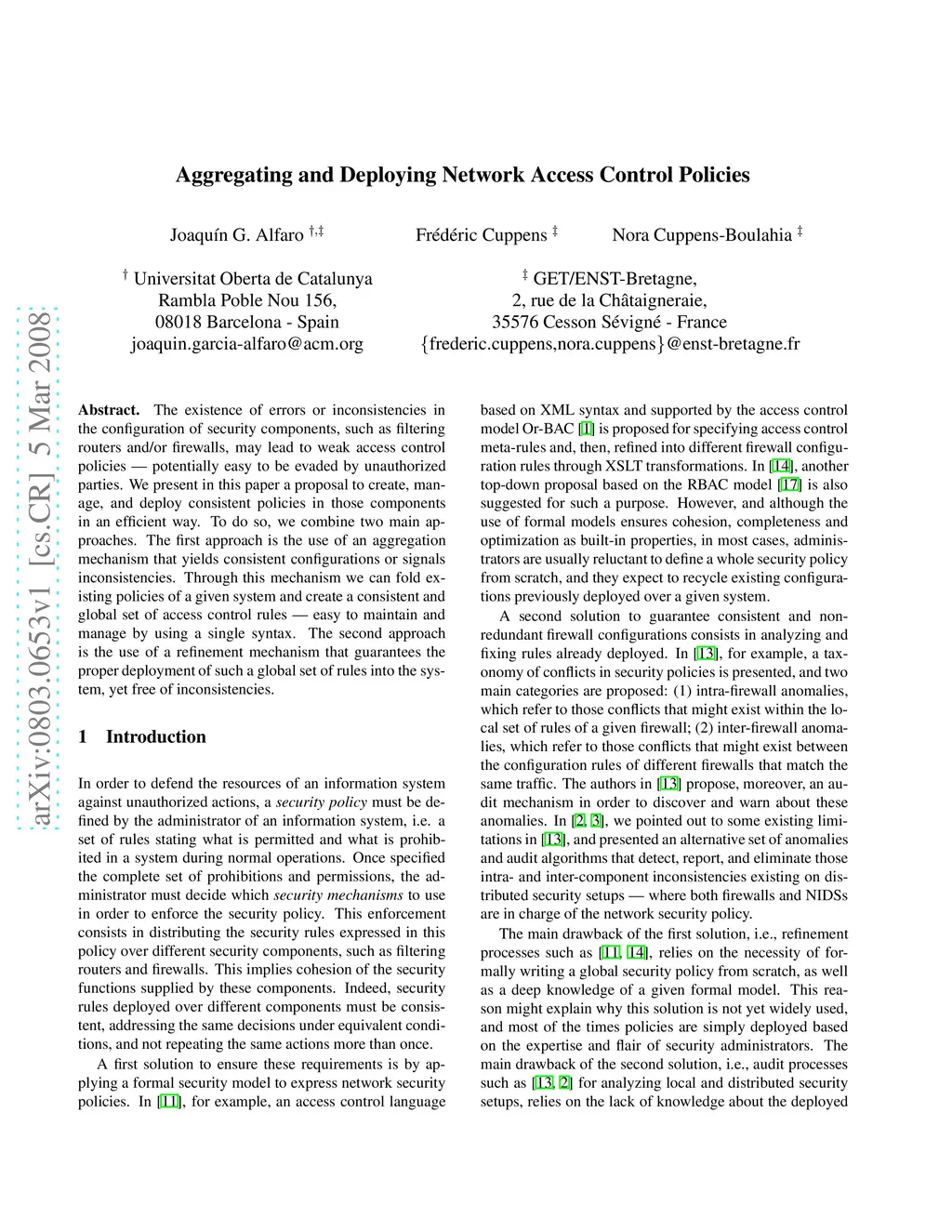 The existence of errors or inconsistencies in the configuration of security components, such as filtering routers and/or firewalls, may lead to weak access control policies -- potentially easy to be evaded by unauthorized parties. We present in this paper a proposal to create, manage, and deploy consistent policies in those components in an efficient way. To do so, we combine two main approaches. The first approach is the use of an aggregation mechanism that yields consistent configurations or signals inconsistencies. Through this mechanism we can fold existing policies of a given system and create a consistent and global set of access control rules -- easy to maintain and manage by using a single syntax. The second approach is the use of a refinement mechanism that guarantees the proper deployment of such a global set of rules into the system, yet free of inconsistencies.