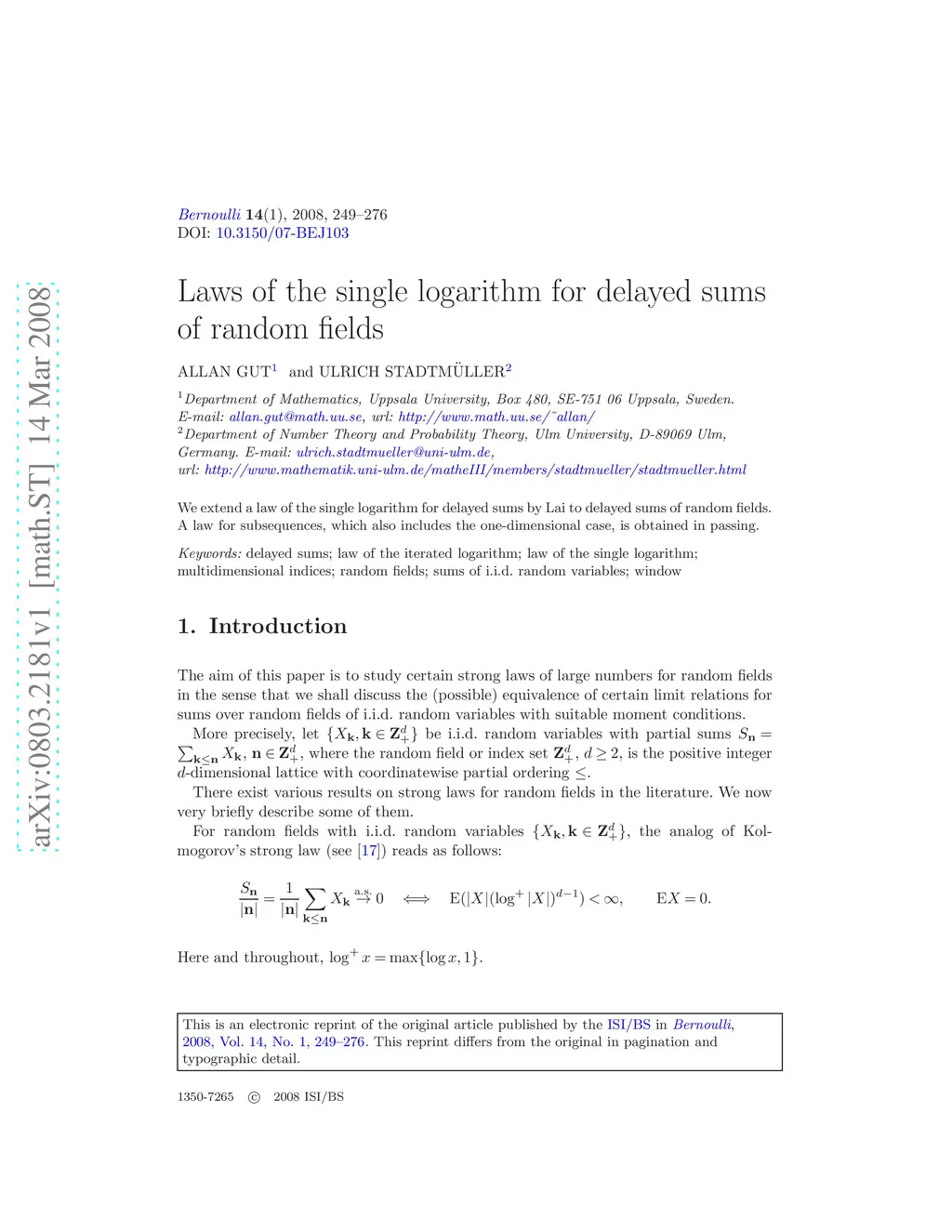 We extend a law of the single logarithm for delayed sums by Lai to delayed sums of random fields. A law for subsequences, which also includes the one-dimensional case, is obtained in passing.