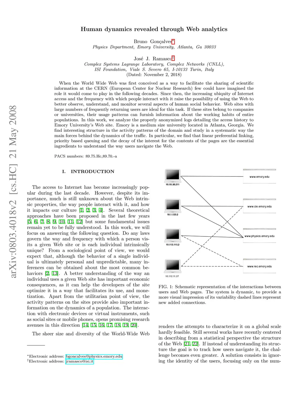 When the World Wide Web was first conceived as a way to facilitate the sharing of scientific information at the CERN (European Center for Nuclear Research) few could have imagined the role it would come to play in the following decades. Since then, the increasing ubiquity of Internet access and the frequency with which people interact with it raise the possibility of using the Web to better observe, understand, and monitor several aspects of human social behavior. Web sites with large numbers of frequently returning users are ideal for this task. If these sites belong to companies or universities, their usage patterns can furnish information about the working habits of entire populations. In this work, we analyze the properly anonymized logs detailing the access history to Emory University's Web site. Emory is a medium size university located in Atlanta, Georgia. We find interesting structure in the activity patterns of the domain and study in a systematic way the main forces behind the dynamics of the traffic. In particular, we show that both linear preferential linking and priority based queuing are essential ingredients to understand the way users navigate the Web.