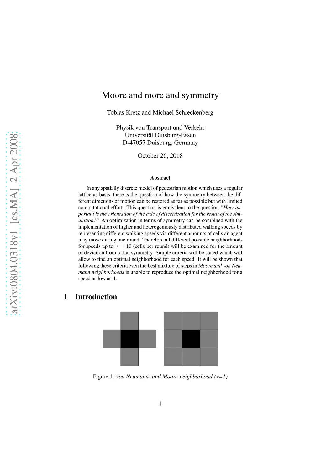 In any spatially discrete model of pedestrian motion which uses a regular lattice as basis, there is the question of how the symmetry between the different directions of motion can be restored as far as possible but with limited computational effort. This question is equivalent to the question ''How important is the orientation of the axis of discretization for the result of the simulation?'' An optimization in terms of symmetry can be combined with the implementation of higher and heterogeniously distributed walking speeds by representing different walking speeds via different amounts of cells an agent may move during one round. Therefore all different possible neighborhoods for speeds up to v = 10 (cells per round) will be examined for the amount of deviation from radial symmetry. Simple criteria will be stated which will allow find an optimal neighborhood for each speed. It will be shown that following these criteria even the best mixture of steps in Moore and von Neumann neighborhoods is unable to reproduce the optimal neighborhood for a speed as low as 4.