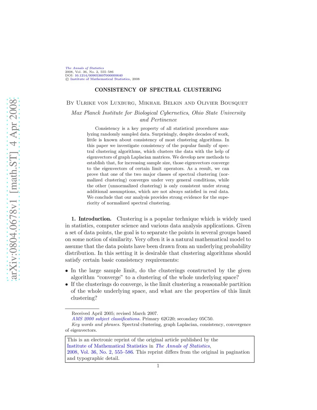 Consistency of spectral clustering