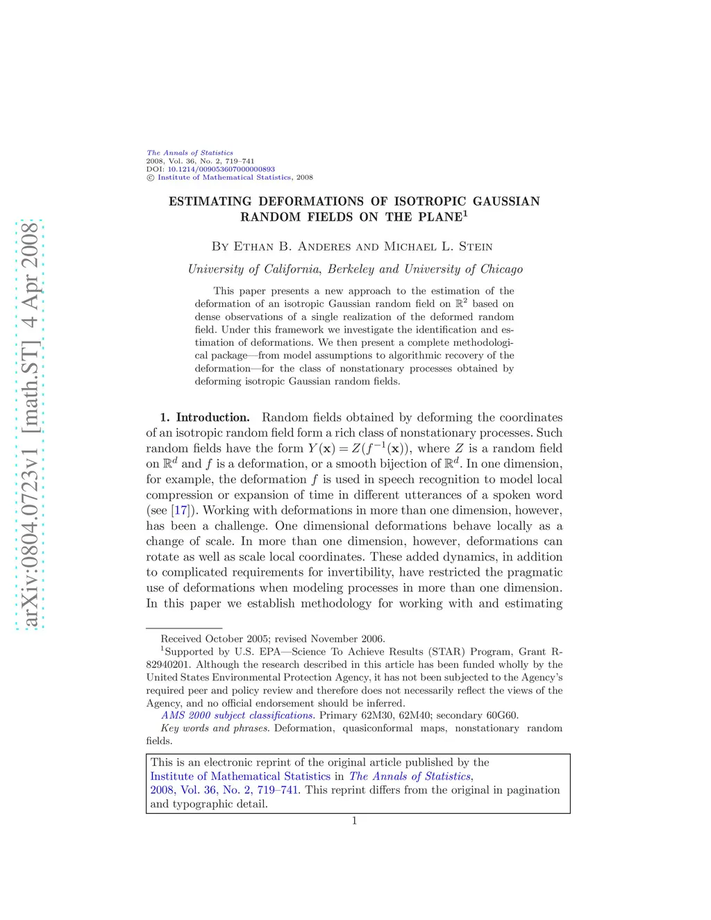 This paper presents a new approach to the estimation of the deformation of an isotropic Gaussian random field on based on dense observations of a single realization of the deformed random field. Under this framework we investigate the identification and estimation of deformations. We then present a complete methodological package--from model assumptions to algorithmic recovery of the deformation--for the class of nonstationary processes obtained by deforming isotropic Gaussian random fields.