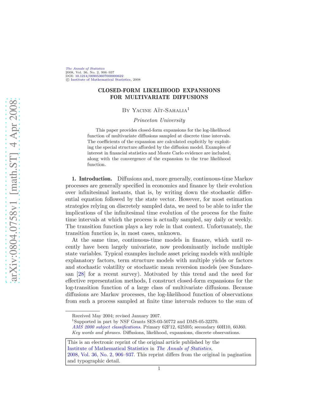 This paper provides closed-form expansions for the log-likelihood function of multivariate diffusions sampled at discrete time intervals. The coefficients of the expansion are calculated explicitly by exploiting the special structure afforded by the diffusion model. Examples of interest in financial statistics and Monte Carlo evidence are included, along with the convergence of the expansion to the true likelihood function.