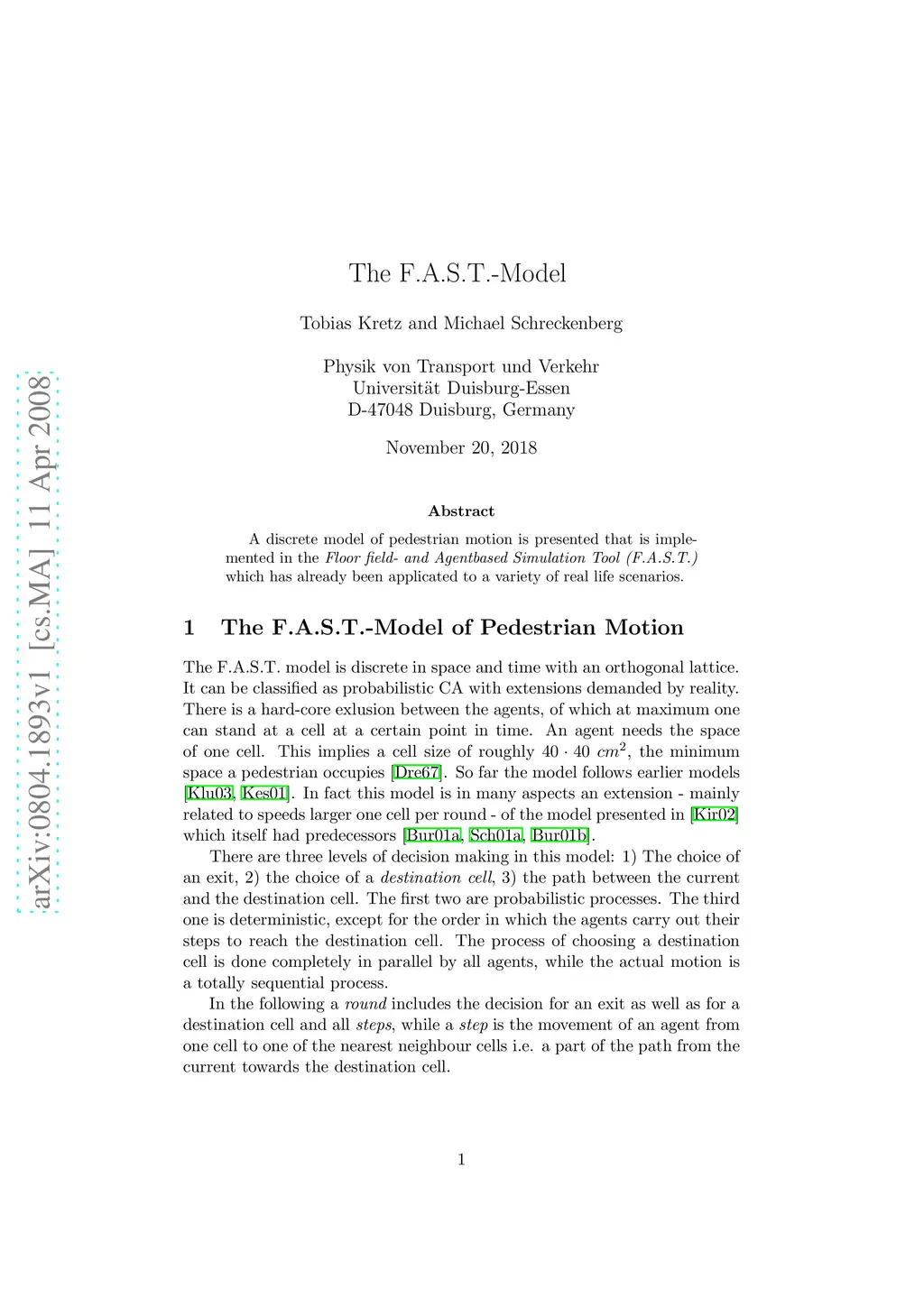 A discrete model of pedestrian motion is presented that is implemented in the Floor field- and Agentbased Simulation Tool (F.A.S.T.) which has already been applicated to a variety of real life scenarios.