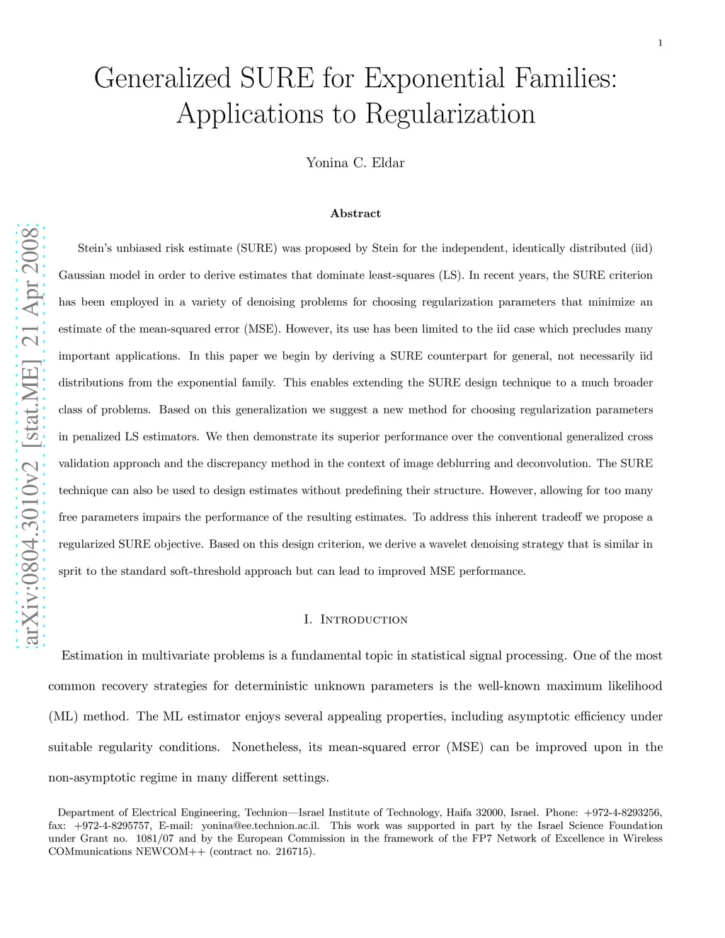 Stein's unbiased risk estimate (SURE) was proposed by Stein for the independent, identically distributed (iid) Gaussian model in order to derive estimates that dominate least-squares (LS). In recent years, the SURE criterion has been employed in a variety of denoising problems for choosing regularization parameters that minimize an estimate of the mean-squared error (MSE). However, its use has been limited to the iid case which precludes many important applications. In this paper we begin by deriving a SURE counterpart for general, not necessarily iid distributions from the exponential family. This enables extending the SURE design technique to a much broader class of problems. Based on this generalization we suggest a new method for choosing regularization parameters in penalized LS estimators. We then demonstrate its superior performance over the conventional generalized cross validation approach and the discrepancy method in the context of image deblurring and deconvolution. The SURE technique can also be used to design estimates without predefining their structure. However, allowing for too many free parameters impairs the performance of the resulting estimates. To address this inherent tradeoff we propose a regularized SURE objective. Based on this design criterion, we derive a wavelet denoising strategy that is similar in sprit to the standard soft-threshold approach but can lead to improved MSE performance.