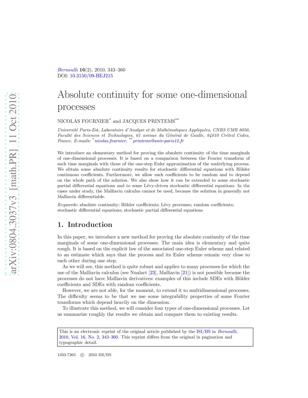 We introduce an elementary method for proving the absolute continuity of the time marginals of one-dimensional processes. It is based on a comparison between the Fourier transform of such time marginals with those of the one-step Euler approximation of the underlying process. We obtain some absolute continuity results for stochastic differential equations with H\"{o}lder continuous coefficients. Furthermore, we allow such coefficients to be random and to depend on the whole path of the solution. We also show how it can be extended to some stochastic partial differential equations and to some L\'{e}vy-driven stochastic differential equations. In the cases under study, the Malliavin calculus cannot be used, because the solution in generally not Malliavin differentiable.