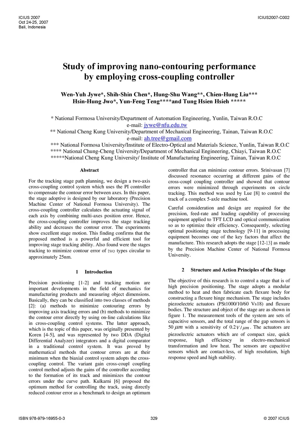 For the tracking stage path planning, we design a two-axis cross-coupling control system which uses the PI controller to compensate the contour error between axes. In this paper, the stage adoptive is designed by our laboratory (Precision Machine Center of National Formosa University). The cross-coupling controller calculates the actuating signal of each axis by combining multi-axes position error. Hence, the cross-coupling controller improves the stage tracking ability and decreases the contour error. The experiments show excellent stage motion. This finding confirms that the proposed method is a powerful and efficient tool for improving stage tracking ability. Also found were the stages tracking to minimize contour error of two types circular to approximately 25nm.