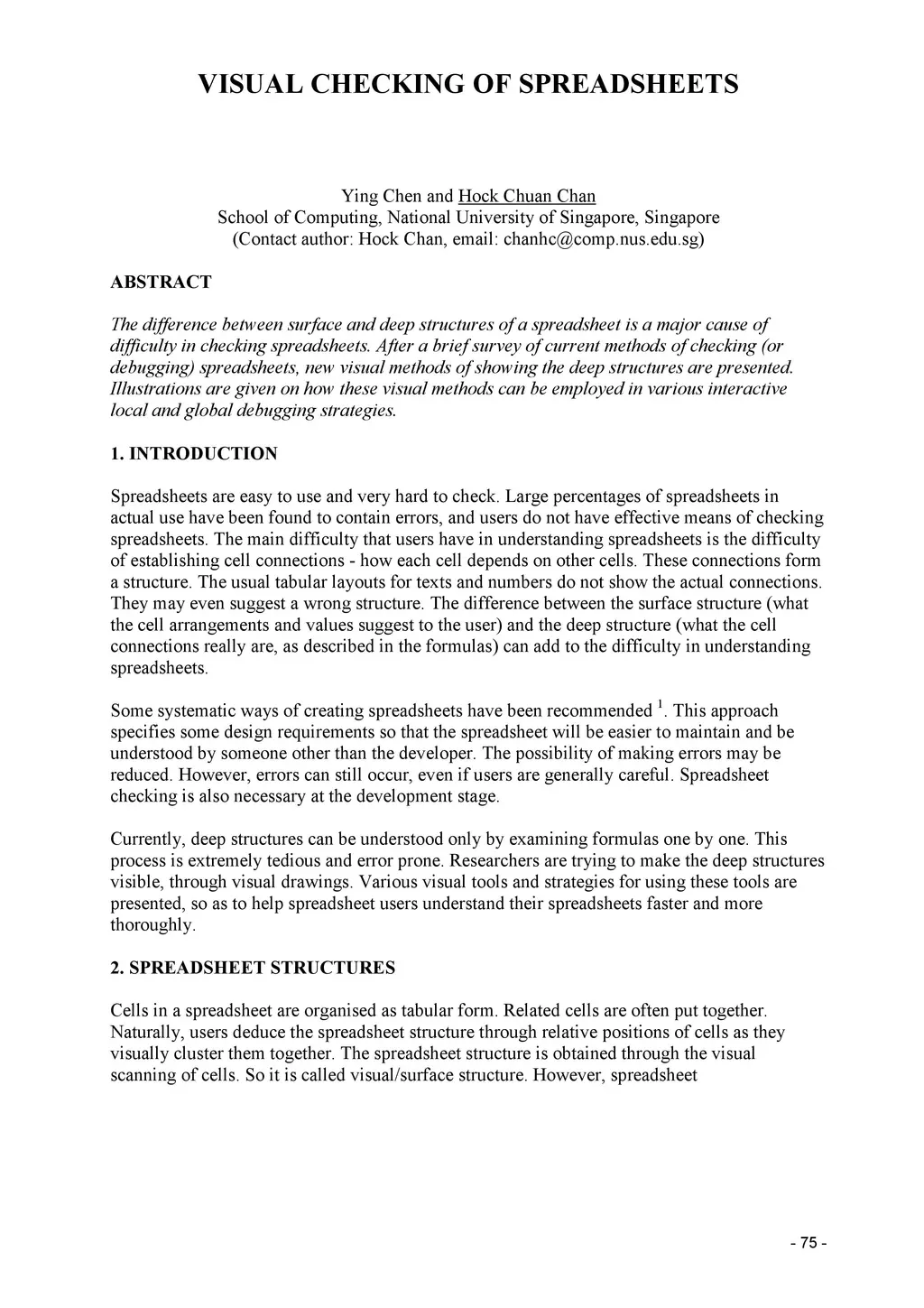 The difference between surface and deep structures of a spreadsheet is a major cause of difficulty in checking spreadsheets. After a brief survey of current methods of checking (or debugging) spreadsheets, new visual methods of showing the deep structures are presented. Illustrations are given on how these visual methods can be employed in various interactive local and global debugging strategies.