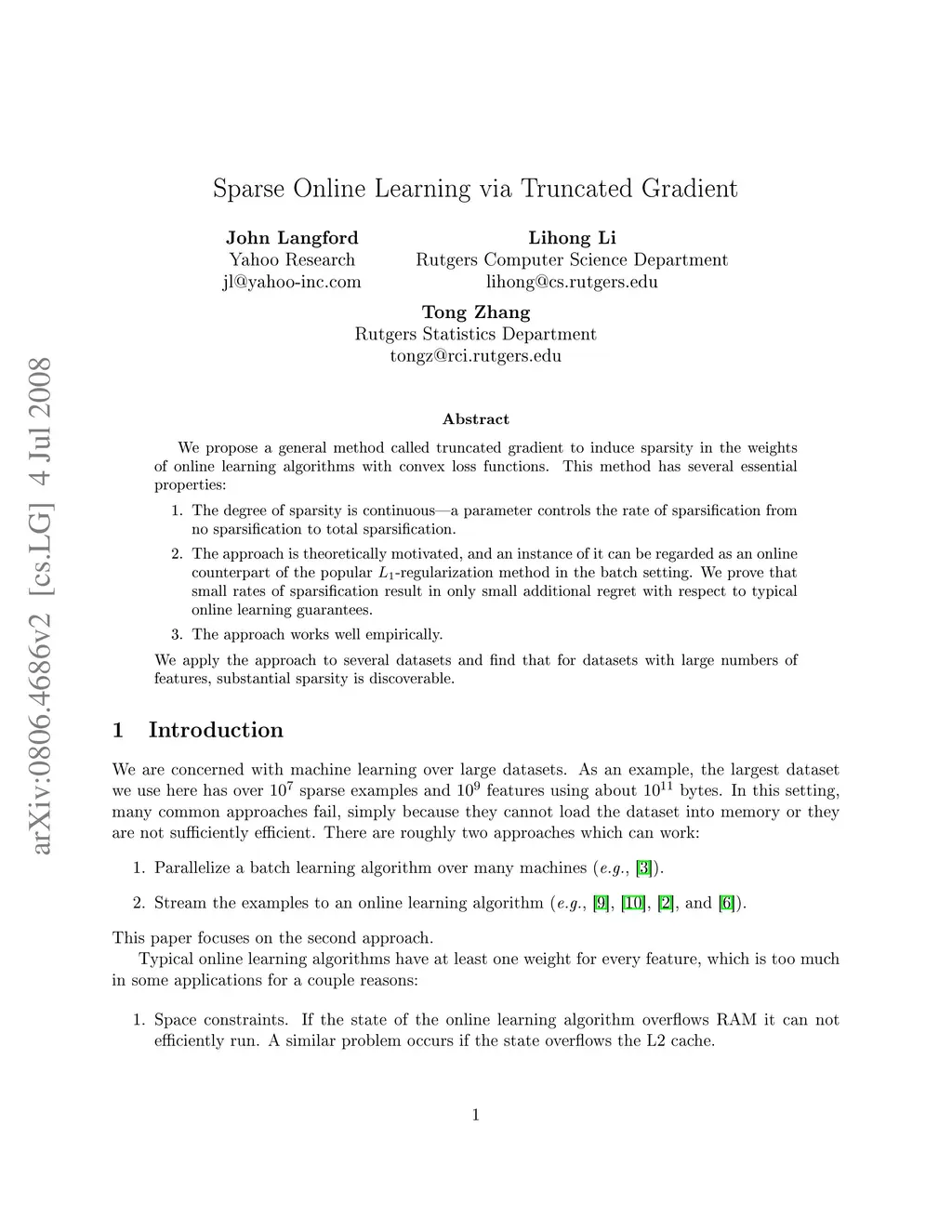 Sparse Online Learning via Truncated Gradient
