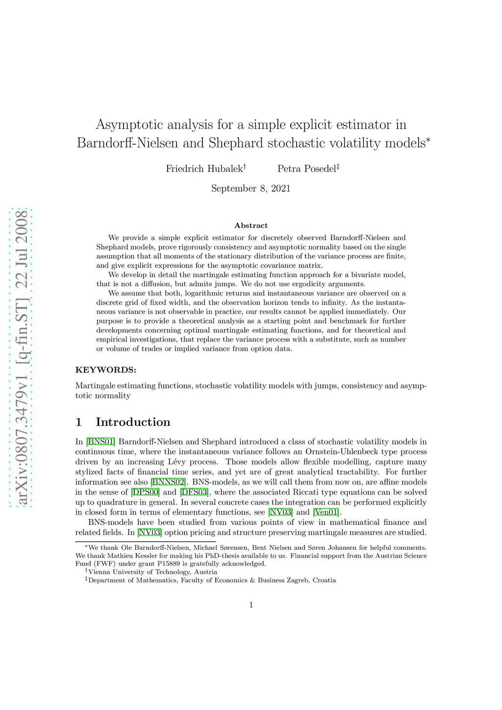 and Shephard stochastic volatility models