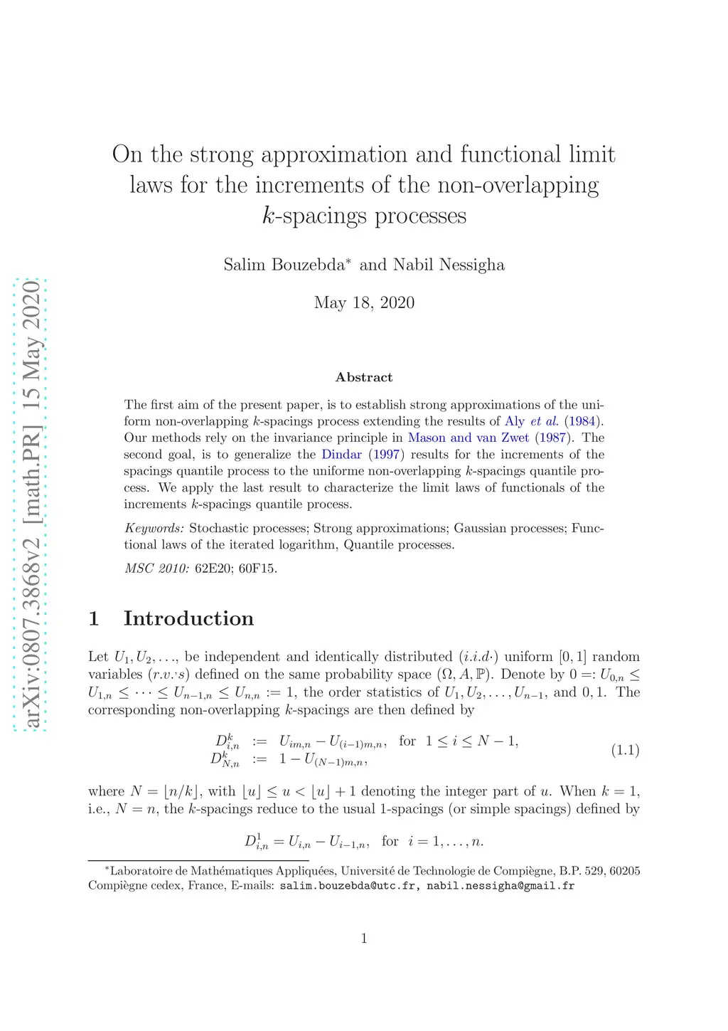 The first aim of the present paper, is to establish strong approximations of the uniform non-overlapping k-spacings process extending the results of Aly et al. (1984). Our methods rely on the invariance principle in Mason and van Zwet (1987). The second goal, is to generalize the Dindar (1997) results for the increments of the spacings quantile process to the uniforme non-overlapping k-spacings quantile process. We apply the last result to characterize the limit laws of functionals of the increments k-spacings quantile process.