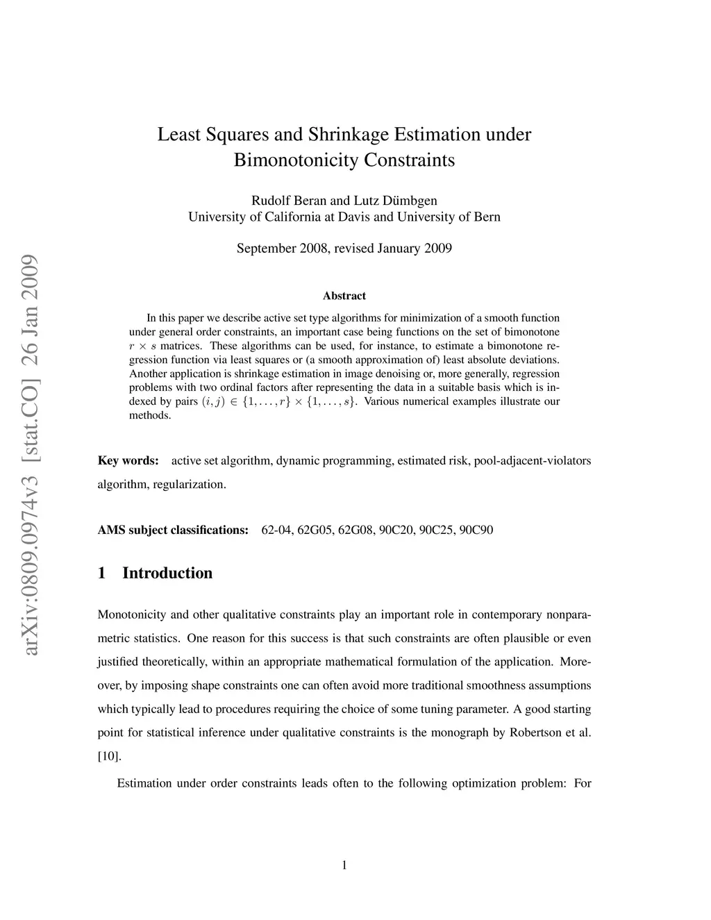 In this paper we describe active set type algorithms for minimization of a smooth function under general order constraints, an important case being functions on the set of bimonotone r-by-s matrices. These algorithms can be used, for instance, to estimate a bimonotone regression function via least squares or (a smooth approximation of) least absolute deviations. Another application is shrinkage estimation in image denoising or, more generally, regression problems with two ordinal factors after representing the data in a suitable basis which is indexed by pairs (i,j) in {1,...,r}x{1,...,s}. Various numerical examples illustrate our methods.
