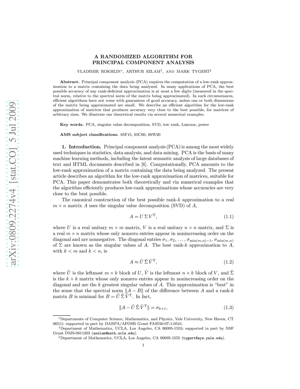 A randomized algorithm for principal component analysis