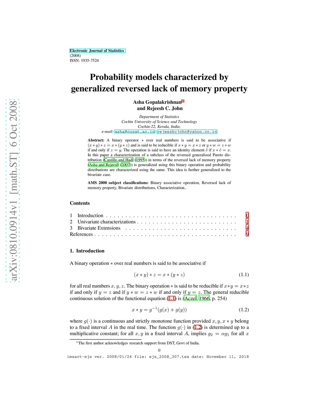 A binary operator * over real numbers is said to be associative if and is said to be reducible if or if and only if . The operation is said to have an identity element if . In this paper a characterization of a subclass of the reversed generalized Pareto distribution (Castillo and Hadi (1995)) in terms of the reversed lack of memory property (Asha and Rejeesh (2007)) is generalized using this binary operation and probability distributions are characterized using the same. This idea is further generalized to the bivariate case.