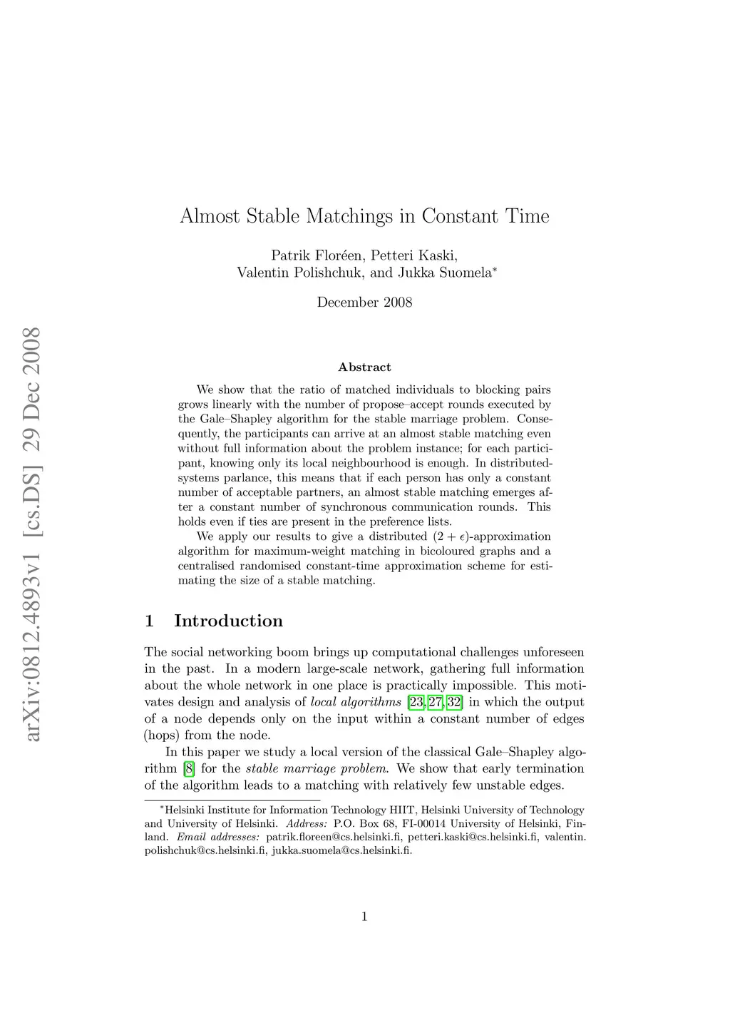 We show that the ratio of matched individuals to blocking pairs grows linearly with the number of propose--accept rounds executed by the Gale--Shapley algorithm for the stable marriage problem. Consequently, the participants can arrive at an almost stable matching even without full information about the problem instance; for each participant, knowing only its local neighbourhood is enough. In distributed-systems parlance, this means that if each person has only a constant number of acceptable partners, an almost stable matching emerges after a constant number of synchronous communication rounds. This holds even if ties are present in the preference lists. We apply our results to give a distributed -approximation algorithm for maximum-weight matching in bicoloured graphs and a centralised randomised constant-time approximation scheme for estimating the size of a stable matching.