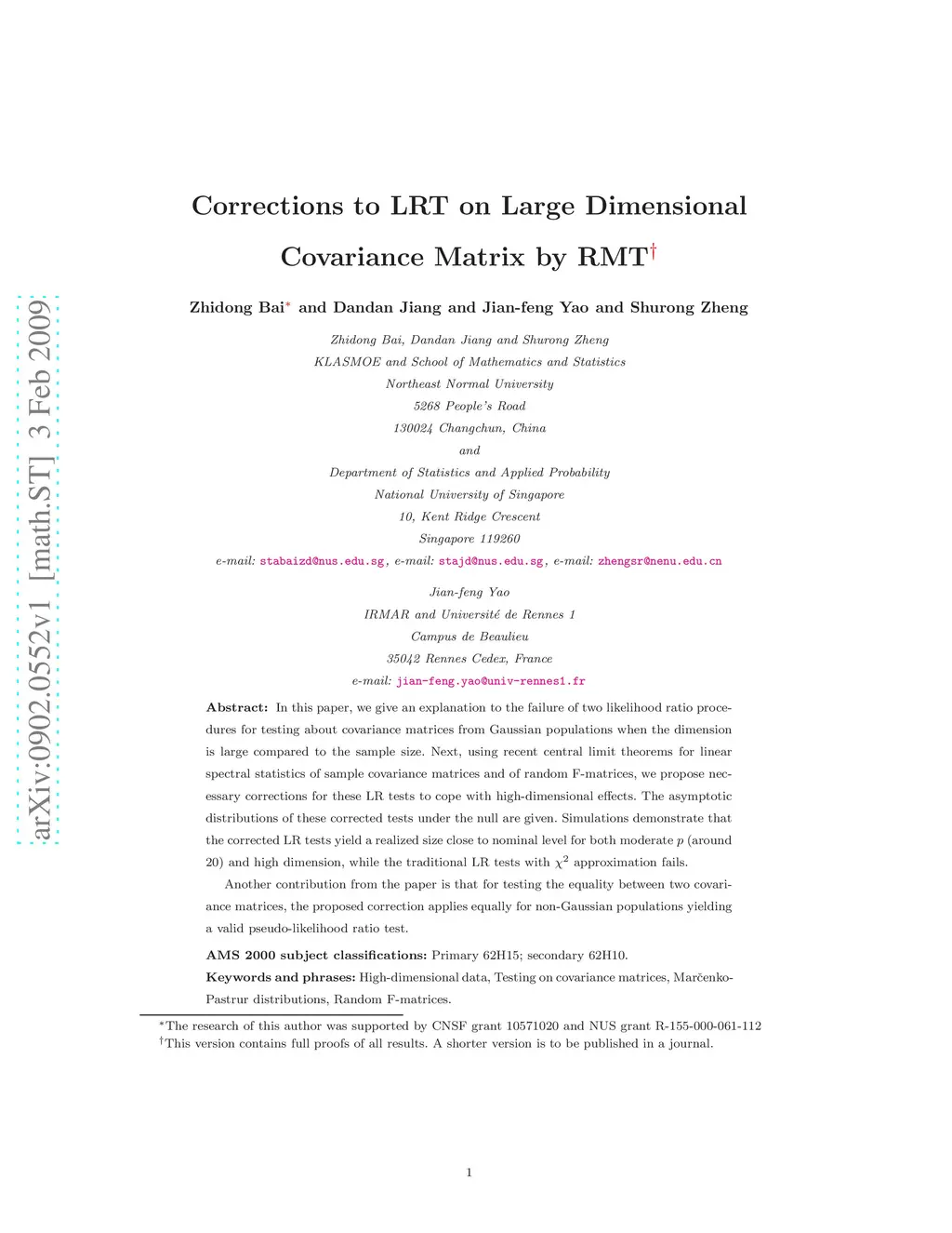 Corrections to LRT on Large Dimensional Covariance Matrix by RMT