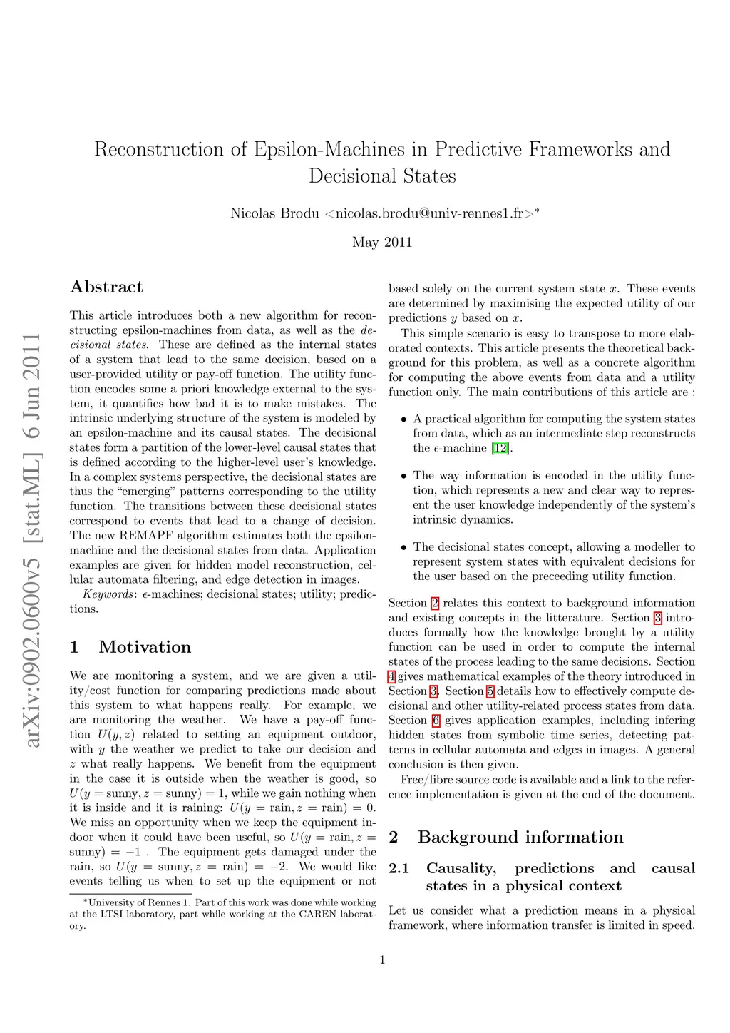 This article introduces both a new algorithm for reconstructing epsilon-machines from data, as well as the decisional states. These are defined as the internal states of a system that lead to the same decision, based on a user-provided utility or pay-off function. The utility function encodes some a priori knowledge external to the system, it quantifies how bad it is to make mistakes. The intrinsic underlying structure of the system is modeled by an epsilon-machine and its causal states. The decisional states form a partition of the lower-level causal states that is defined according to the higher-level user's knowledge. In a complex systems perspective, the decisional states are thus the "emerging" patterns corresponding to the utility function. The transitions between these decisional states correspond to events that lead to a change of decision. The new REMAPF algorithm estimates both the epsilon-machine and the decisional states from data. Application examples are given for hidden model reconstruction, cellular automata filtering, and edge detection in images.