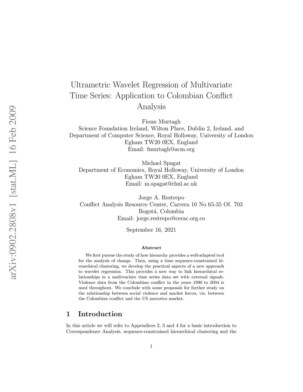 We first pursue the study of how hierarchy provides a well-adapted tool for the analysis of change. Then, using a time sequence-constrained hierarchical clustering, we develop the practical aspects of a new approach to wavelet regression. This provides a new way to link hierarchical relationships in a multivariate time series data set with external signals. Violence data from the Colombian conflict in the years 1990 to 2004 is used throughout. We conclude with some proposals for further study on the relationship between social violence and market forces, viz. between the Colombian conflict and the US narcotics market.