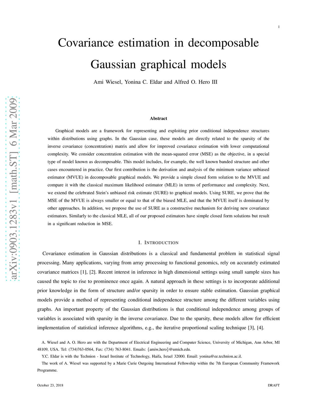 Graphical models are a framework for representing and exploiting prior conditional independence structures within distributions using graphs. In the Gaussian case, these models are directly related to the sparsity of the inverse covariance (concentration) matrix and allow for improved covariance estimation with lower computational complexity. We consider concentration estimation with the mean-squared error (MSE) as the objective, in a special type of model known as decomposable. This model includes, for example, the well known banded structure and other cases encountered in practice. Our first contribution is the derivation and analysis of the minimum variance unbiased estimator (MVUE) in decomposable graphical models. We provide a simple closed form solution to the MVUE and compare it with the classical maximum likelihood estimator (MLE) in terms of performance and complexity. Next, we extend the celebrated Stein's unbiased risk estimate (SURE) to graphical models. Using SURE, we prove that the MSE of the MVUE is always smaller or equal to that of the biased MLE, and that the MVUE itself is dominated by other approaches. In addition, we propose the use of SURE as a constructive mechanism for deriving new covariance estimators. Similarly to the classical MLE, all of our proposed estimators have simple closed form solutions but result in a significant reduction in MSE.