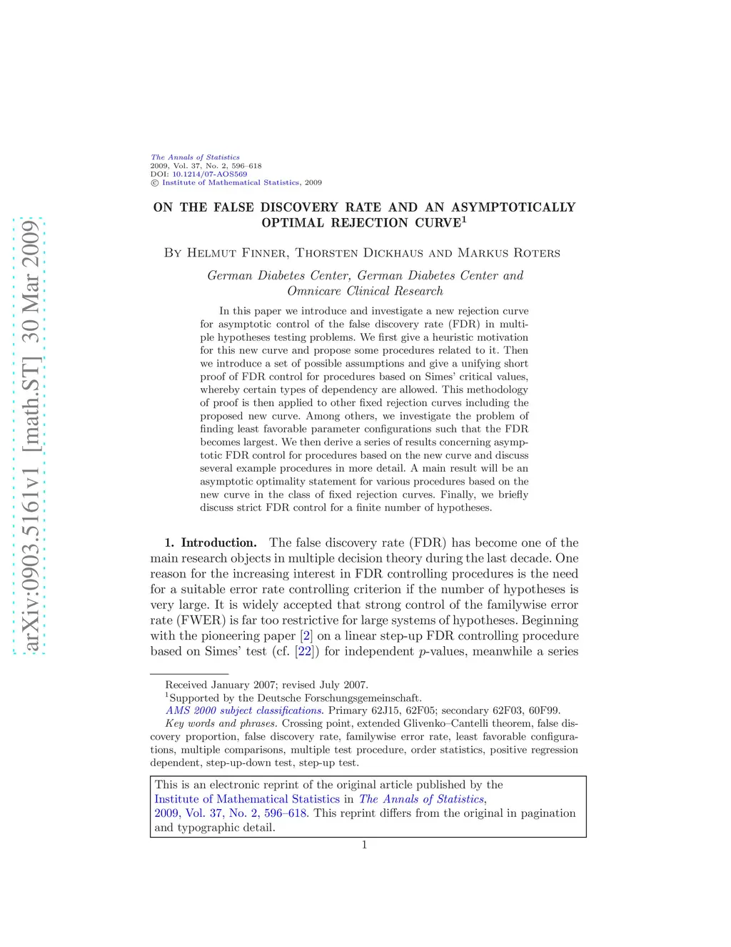 In this paper we introduce and investigate a new rejection curve for asymptotic control of the false discovery rate (FDR) in multiple hypotheses testing problems. We first give a heuristic motivation for this new curve and propose some procedures related to it. Then we introduce a set of possible assumptions and give a unifying short proof of FDR control for procedures based on Simes' critical values, whereby certain types of dependency are allowed. This methodology of proof is then applied to other fixed rejection curves including the proposed new curve. Among others, we investigate the problem of finding least favorable parameter configurations such that the FDR becomes largest. We then derive a series of results concerning asymptotic FDR control for procedures based on the new curve and discuss several example procedures in more detail. A main result will be an asymptotic optimality statement for various procedures based on the new curve in the class of fixed rejection curves. Finally, we briefly discuss strict FDR control for a finite number of hypotheses.