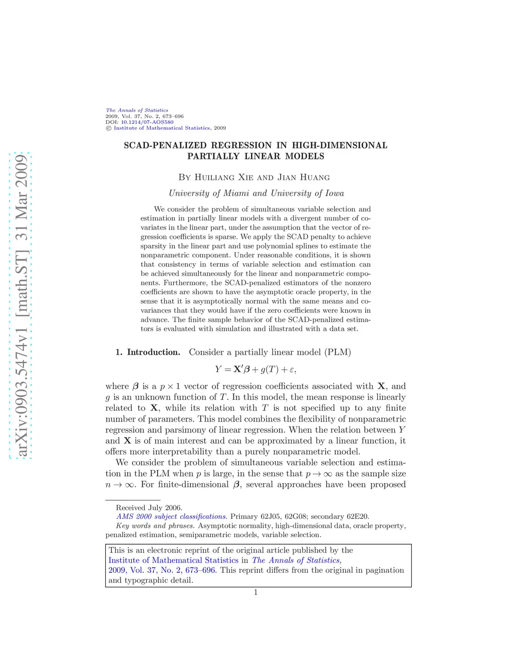 We consider the problem of simultaneous variable selection and estimation in partially linear models with a divergent number of covariates in the linear part, under the assumption that the vector of regression coefficients is sparse. We apply the SCAD penalty to achieve sparsity in the linear part and use polynomial splines to estimate the nonparametric component. Under reasonable conditions, it is shown that consistency in terms of variable selection and estimation can be achieved simultaneously for the linear and nonparametric components. Furthermore, the SCAD-penalized estimators of the nonzero coefficients are shown to have the asymptotic oracle property, in the sense that it is asymptotically normal with the same means and covariances that they would have if the zero coefficients were known in advance. The finite sample behavior of the SCAD-penalized estimators is evaluated with simulation and illustrated with a data set.