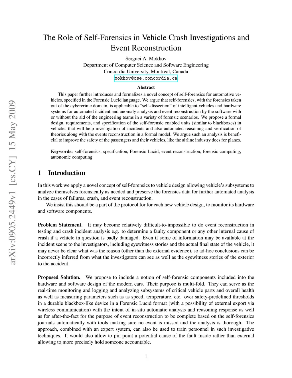 The Role of Self-Forensics in Vehicle Crash Investigations and Event