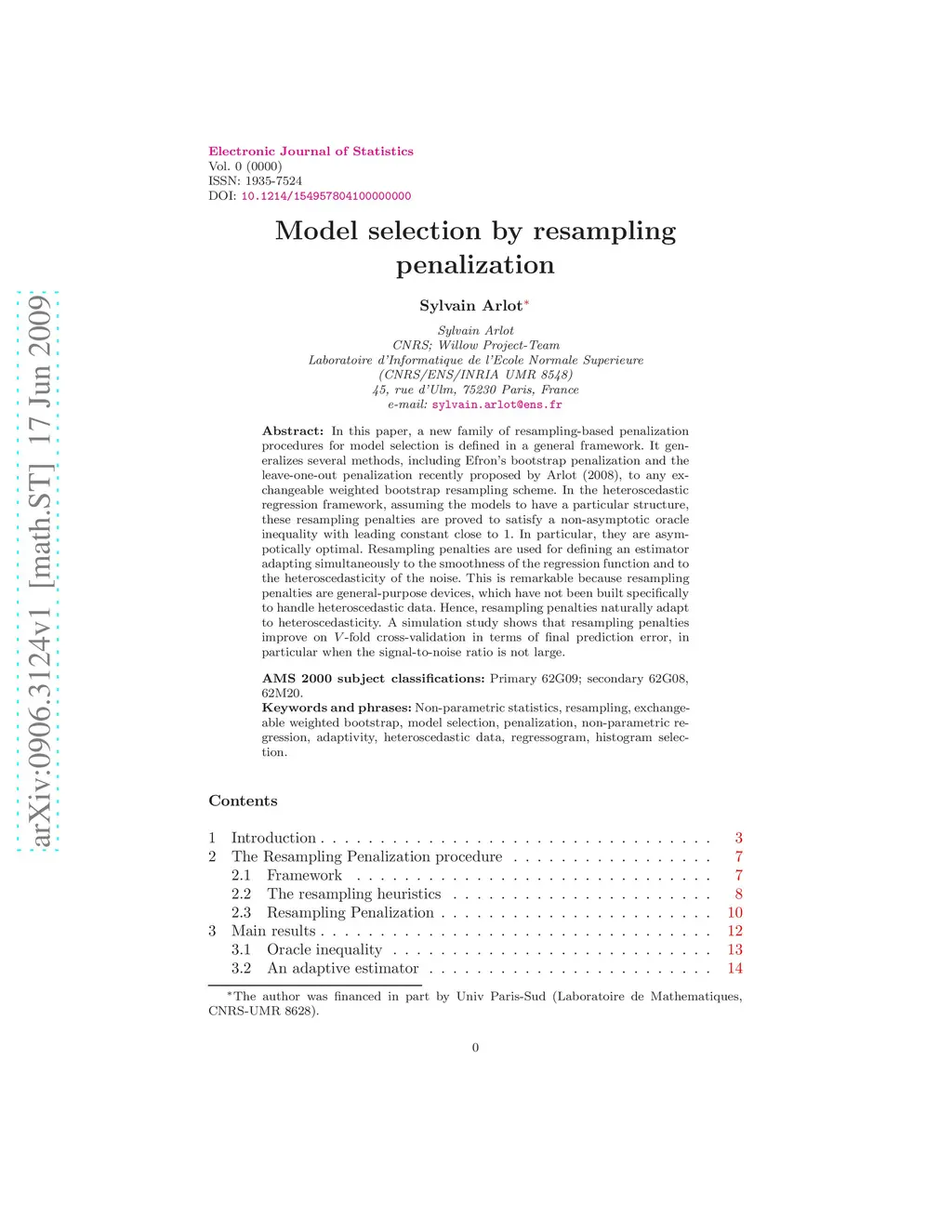 In this paper, a new family of resampling-based penalization procedures for model selection is defined in a general framework. It generalizes several methods, including Efron's bootstrap penalization and the leave-one-out penalization recently proposed by Arlot (2008), to any exchangeable weighted bootstrap resampling scheme. In the heteroscedastic regression framework, assuming the models to have a particular structure, these resampling penalties are proved to satisfy a non-asymptotic oracle inequality with leading constant close to 1. In particular, they are asympotically optimal. Resampling penalties are used for defining an estimator adapting simultaneously to the smoothness of the regression function and to the heteroscedasticity of the noise. This is remarkable because resampling penalties are general-purpose devices, which have not been built specifically to handle heteroscedastic data. Hence, resampling penalties naturally adapt to heteroscedasticity. A simulation study shows that resampling penalties improve on V-fold cross-validation in terms of final prediction error, in particular when the signal-to-noise ratio is not large.