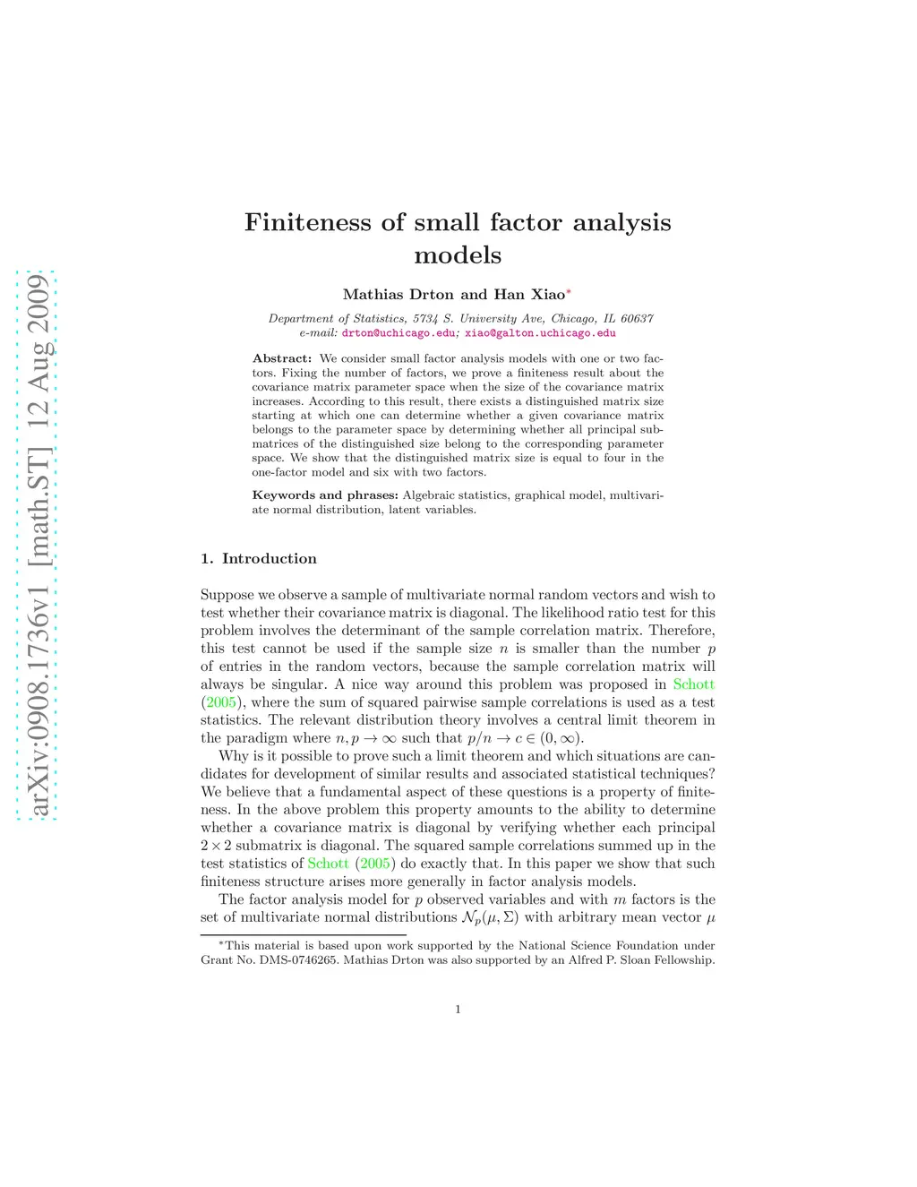 Finiteness of small factor analysis models