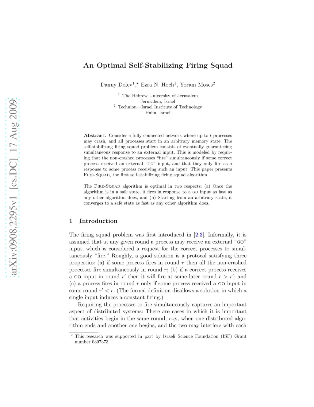 Consider a fully connected network where up to processes may crash, and all processes start in an arbitrary memory state. The self-stabilizing firing squad problem consists of eventually guaranteeing simultaneous response to an external input. This is modeled by requiring that the non-crashed processes "fire" simultaneously if some correct process received an external "GO" input, and that they only fire as a response to some process receiving such an input. This paper presents FireAlg, the first self-stabilizing firing squad algorithm. The FireAlg algorithm is optimal in two respects: (a) Once the algorithm is in a safe state, it fires in response to a GO input as fast as any other algorithm does, and (b) Starting from an arbitrary state, it converges to a safe state as fast as any other algorithm does.
