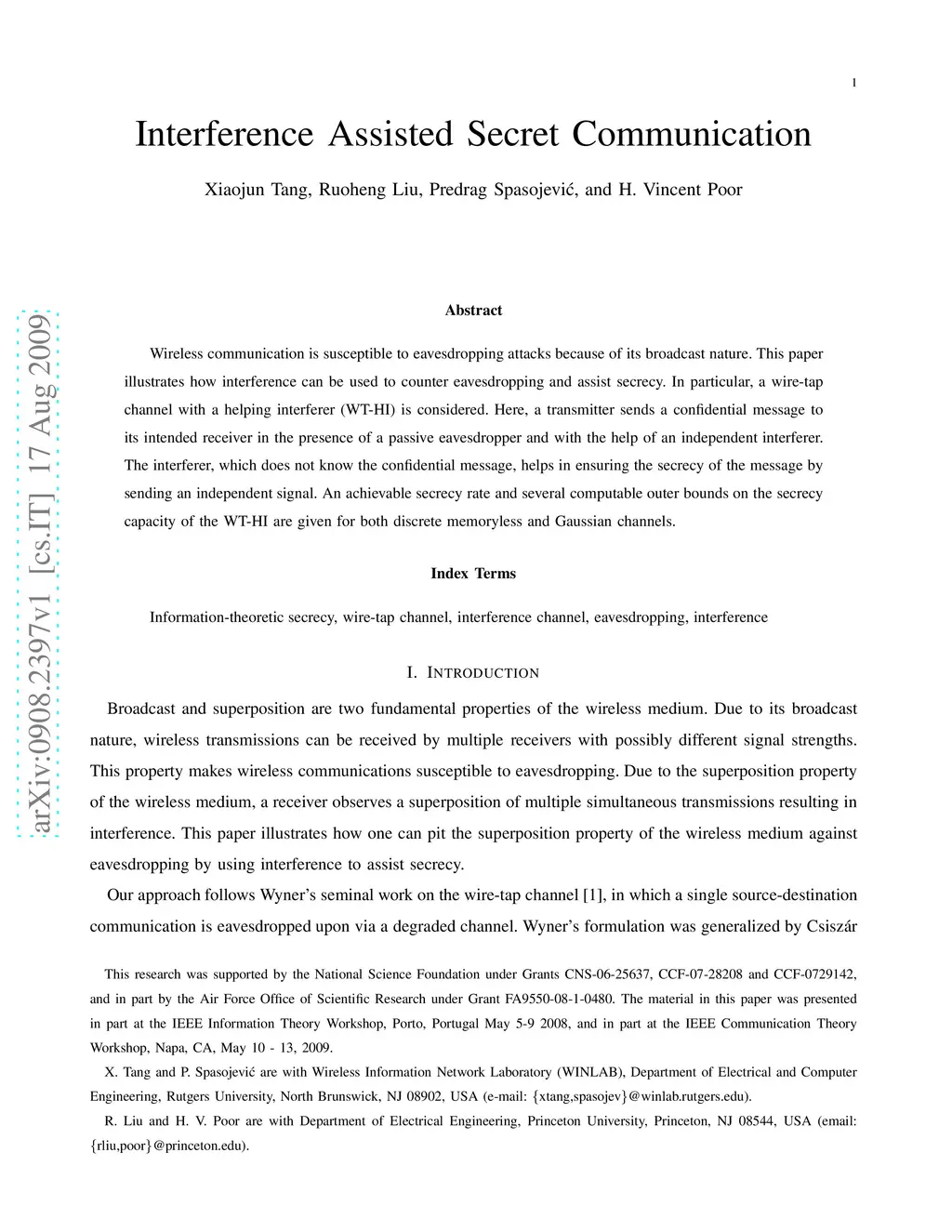 Interference Assisted Secret Communication
