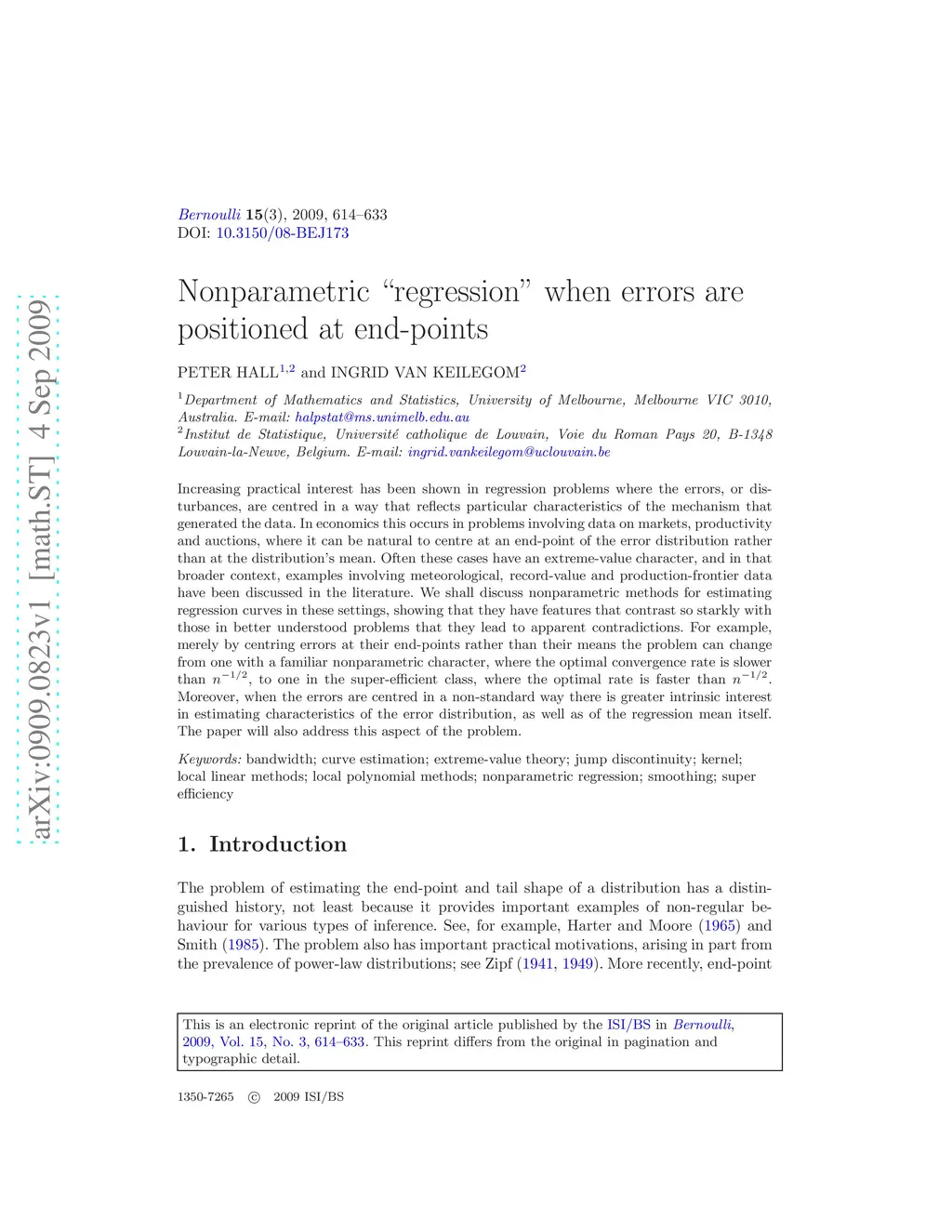 Increasing practical interest has been shown in regression problems where the errors, or disturbances, are centred in a way that reflects particular characteristics of the mechanism that generated the data. In economics this occurs in problems involving data on markets, productivity and auctions, where it can be natural to centre at an end-point of the error distribution rather than at the distribution's mean. Often these cases have an extreme-value character, and in that broader context, examples involving meteorological, record-value and production-frontier data have been discussed in the literature. We shall discuss nonparametric methods for estimating regression curves in these settings, showing that they have features that contrast so starkly with those in better understood problems that they lead to apparent contradictions. For example, merely by centring errors at their end-points rather than their means the problem can change from one with a familiar nonparametric character, where the optimal convergence rate is slower than , to one in the super-efficient class, where the optimal rate is faster than . Moreover, when the errors are centred in a non-standard way there is greater intrinsic interest in estimating characteristics of the error distribution, as well as of the regression mean itself. The paper will also address this aspect of the problem.
