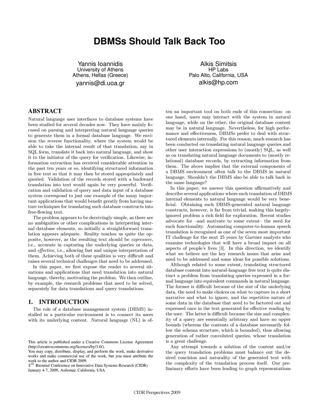 Natural language user interfaces to database systems have been studied for several decades now. They have mainly focused on parsing and interpreting natural language queries to generate them in a formal database language. We envision the reverse functionality, where the system would be able to take the internal result of that translation, say in SQL form, translate it back into natural language, and show it to the initiator of the query for verification. Likewise, information extraction has received considerable attention in the past ten years or so, identifying structured information in free text so that it may then be stored appropriately and queried. Validation of the records stored with a backward translation into text would again be very powerful. Verification and validation of query and data input of a database system correspond to just one example of the many important applications that would benefit greatly from having mature techniques for translating such database constructs into free-flowing text. The problem appears to be deceivingly simple, as there are no ambiguities or other complications in interpreting internal database elements, so initially a straightforward translation appears adequate. Reality teaches us quite the opposite, however, as the resulting text should be expressive, i.e., accurate in capturing the underlying queries or data, and effective, i.e., allowing fast and unique interpretation of them. Achieving both of these qualities is very difficult and raises several technical challenges that need to be addressed. In this paper, we first expose the reader to several situations and applications that need translation into natural language, thereby, motivating the problem. We then outline, by example, the research problems that need to be solved, separately for data translations and query translations.