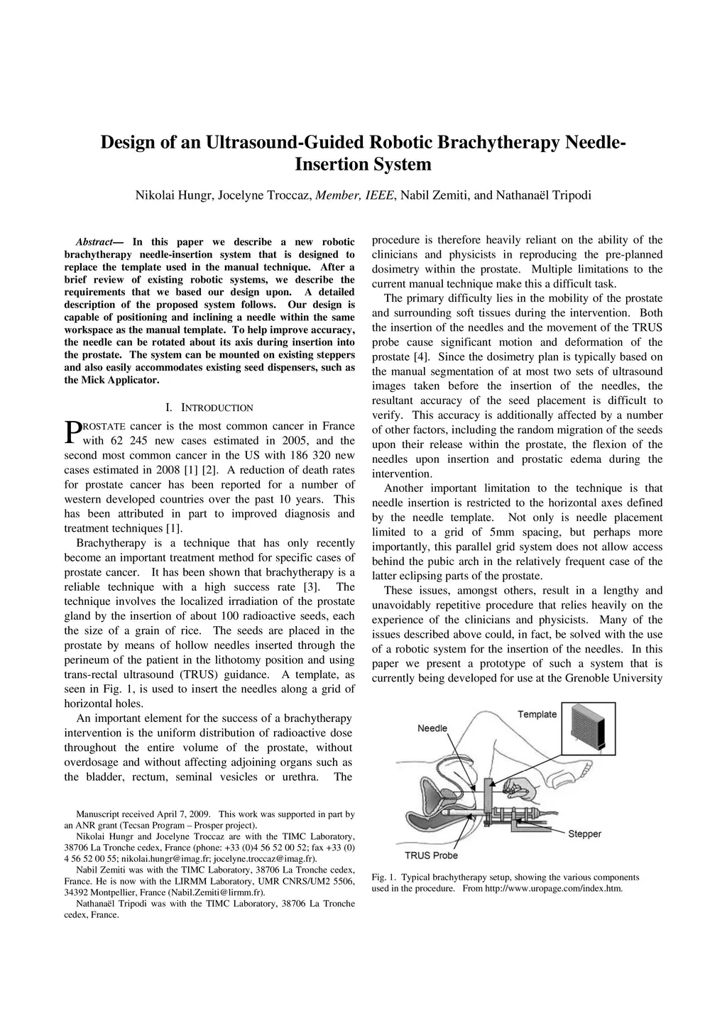 Design of an ultrasound-guided robotic brachytherapy needle insertion