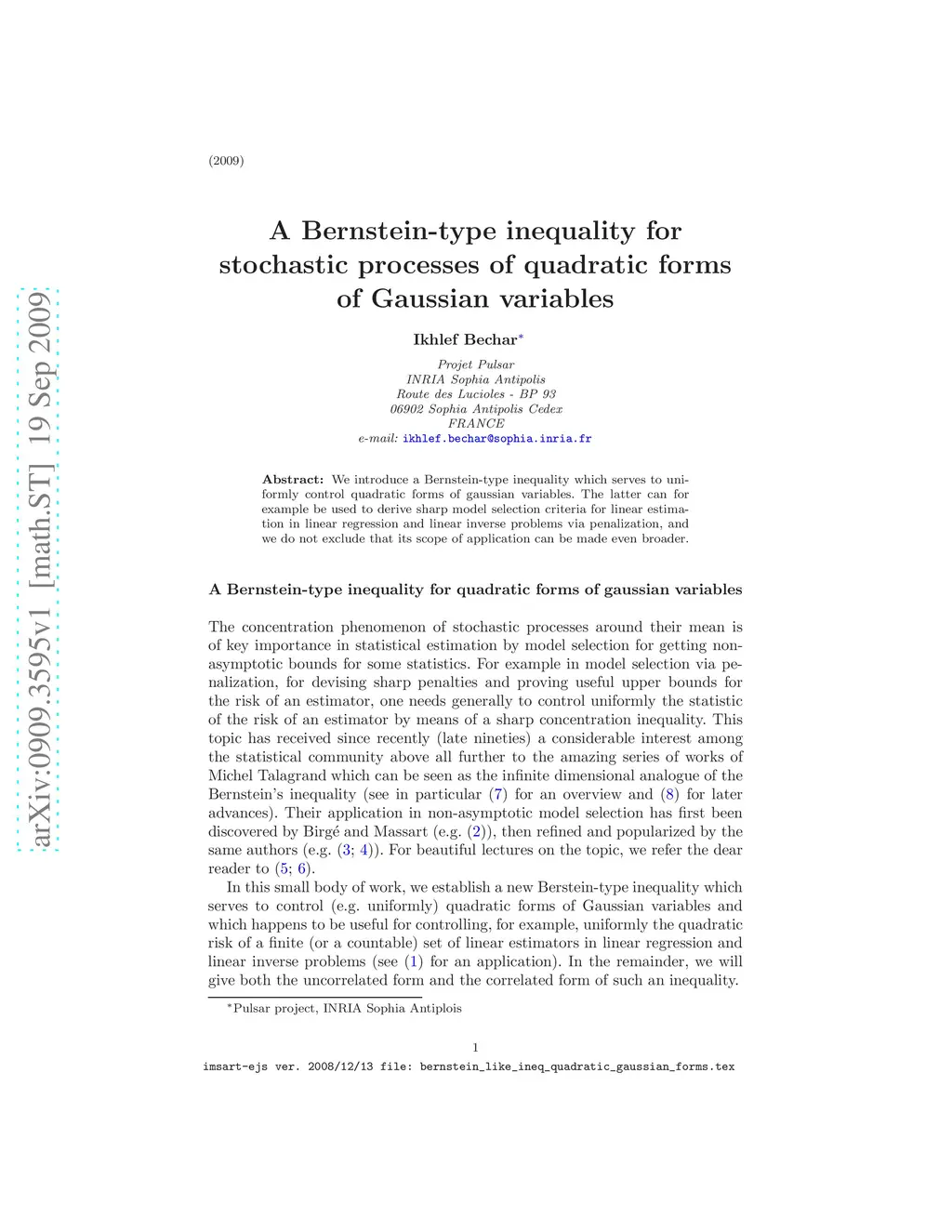 We introduce a Bernstein-type inequality which serves to uniformly control quadratic forms of gaussian variables. The latter can for example be used to derive sharp model selection criteria for linear estimation in linear regression and linear inverse problems via penalization, and we do not exclude that its scope of application can be made even broader.