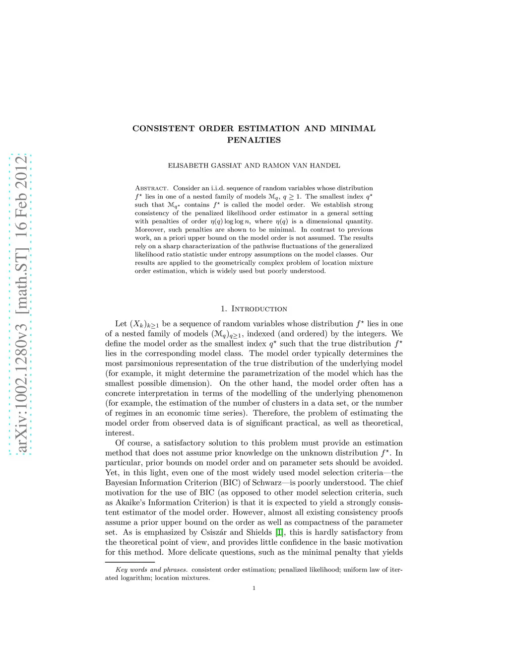 Consider an i.i.d. sequence of random variables whose distribution f* lies in one of a nested family of models M_q, q>=1. The smallest index q* such that M_{q*} contains f* is called the model order. We establish strong consistency of the penalized likelihood order estimator in a general setting with penalties of order \eta(q) log log n, where \eta(q) is a dimensional quantity. Moreover, such penalties are shown to be minimal. In contrast to previous work, an a priori upper bound on the model order is not assumed. The results rely on a sharp characterization of the pathwise fluctuations of the generalized likelihood ratio statistic under entropy assumptions on the model classes. Our results are applied to the geometrically complex problem of location mixture order estimation, which is widely used but poorly understood.