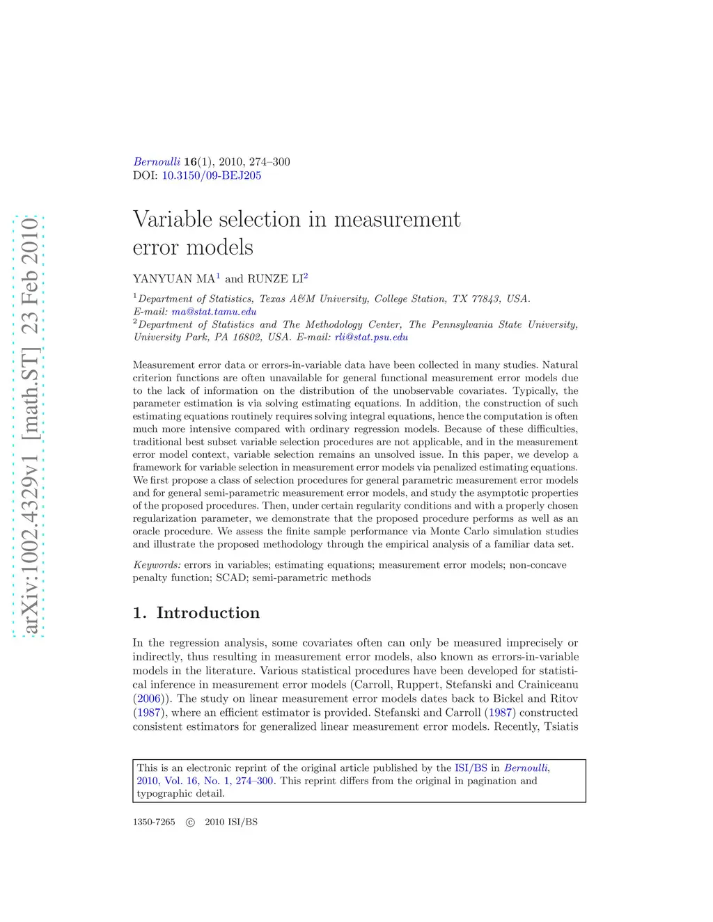 Variable selection in measurement error models