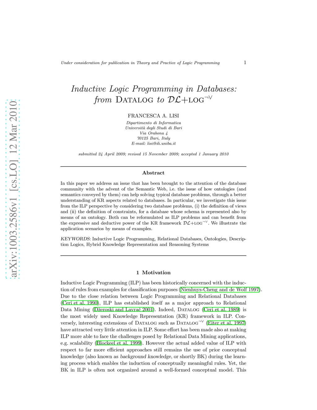 Inductive Logic Programming in Databases: from Datalog to DL+log