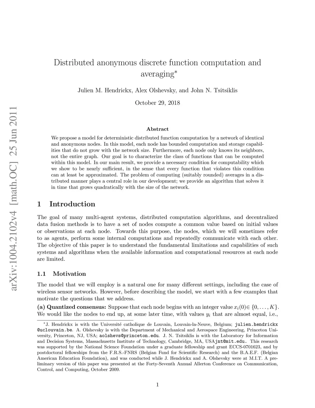 We propose a model for deterministic distributed function computation by a network of identical and anonymous nodes. In this model, each node has bounded computation and storage capabilities that do not grow with the network size. Furthermore, each node only knows its neighbors, not the entire graph. Our goal is to characterize the class of functions that can be computed within this model. In our main result, we provide a necessary condition for computability which we show to be nearly sufficient, in the sense that every function that satisfies this condition can at least be approximated. The problem of computing suitably rounded averages in a distributed manner plays a central role in our development; we provide an algorithm that solves it in time that grows quadratically with the size of the network.