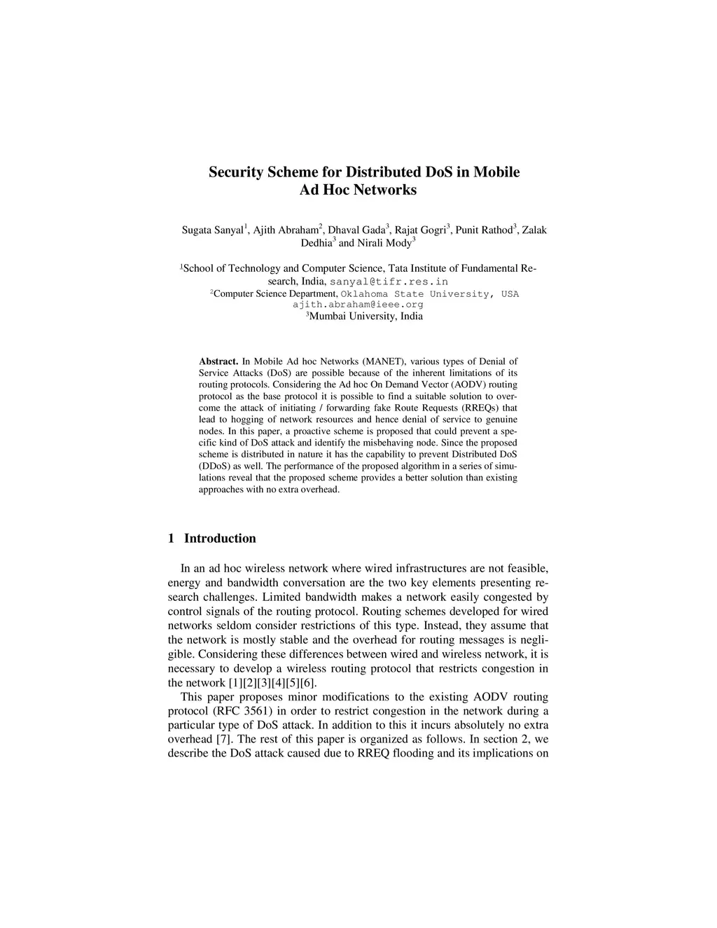Security Scheme for Distributed DoS in Mobile Ad Hoc Networks