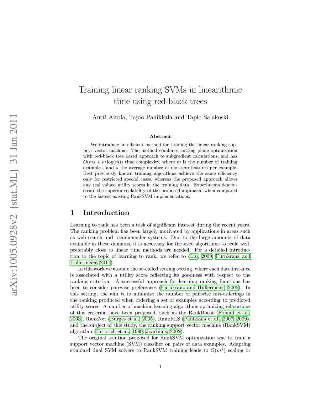 Training linear ranking SVMs in linearithmic time using red-black trees