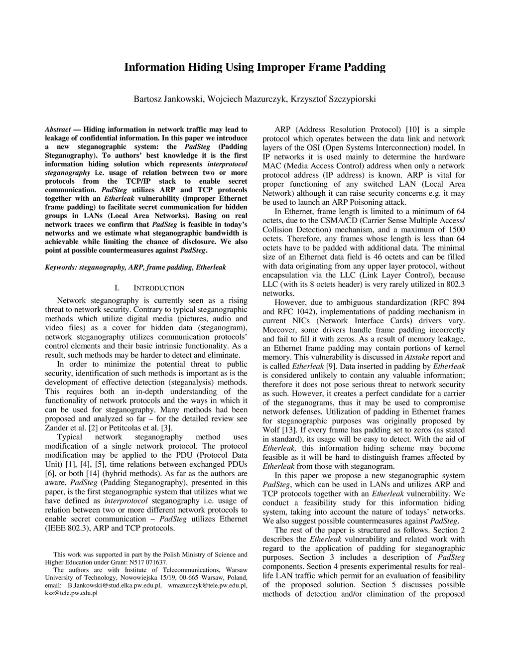 Information Hiding Using Improper Frame Padding