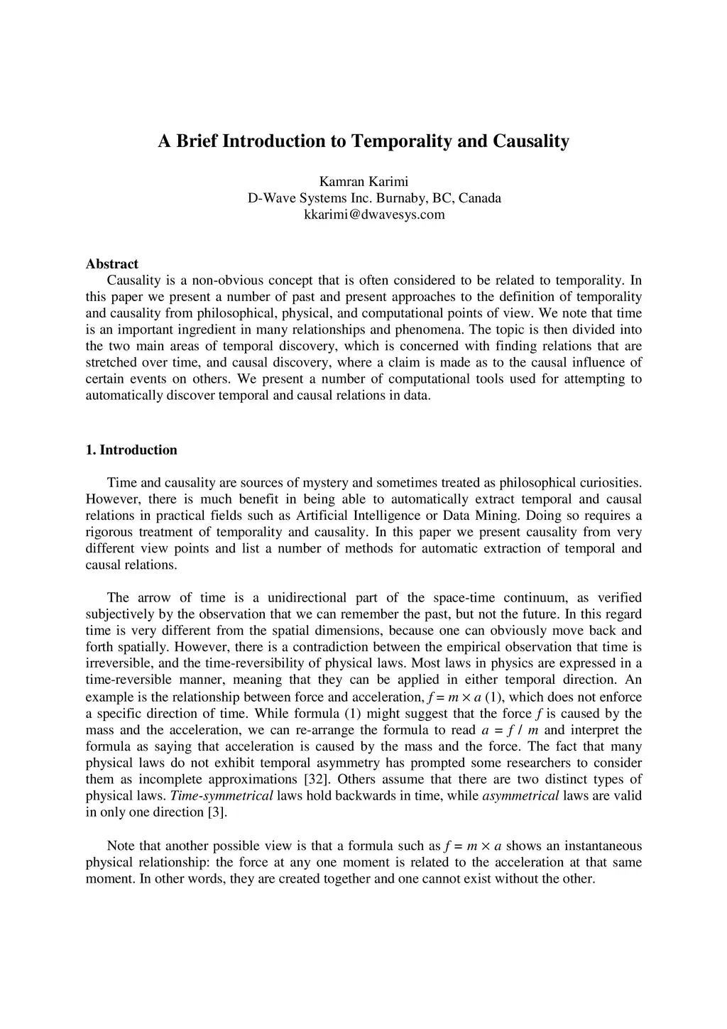A Brief Introduction to Temporality and Causality