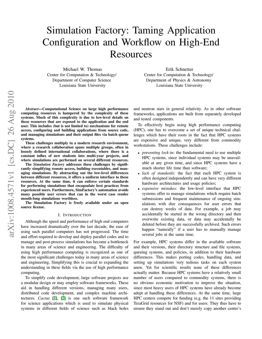 Computational Science on large high performance computing resources is hampered by the complexity of these systems. Much of this complexity is due to low-level details on these resources that are exposed to the application and the end user. This includes (but is not limited to) mechanisms for remote access, configuring and building applications from source code, and managing simulations and their output files via batch queue systems. These challenges multiply in a modern research environment, where a research collaboration spans multiple groups, often in loosely defined international collaborations, where there is a constant influx of new students into multi-year projects, and where simulations are performed on several different resources. The Simulation Factory addresses these challenges by significantly simplifying remote access, building executables, and managing simulations. By abstracting out the low-level differences between different resources, it offers a uniform interface to these resources. At the same time, it can enforce certain standards for performing simulations that encapsulate best practices from experienced users. Furthermore, SimFactory's automation avoids many possible user errors that can in the worst case render month-long simulations worthless.